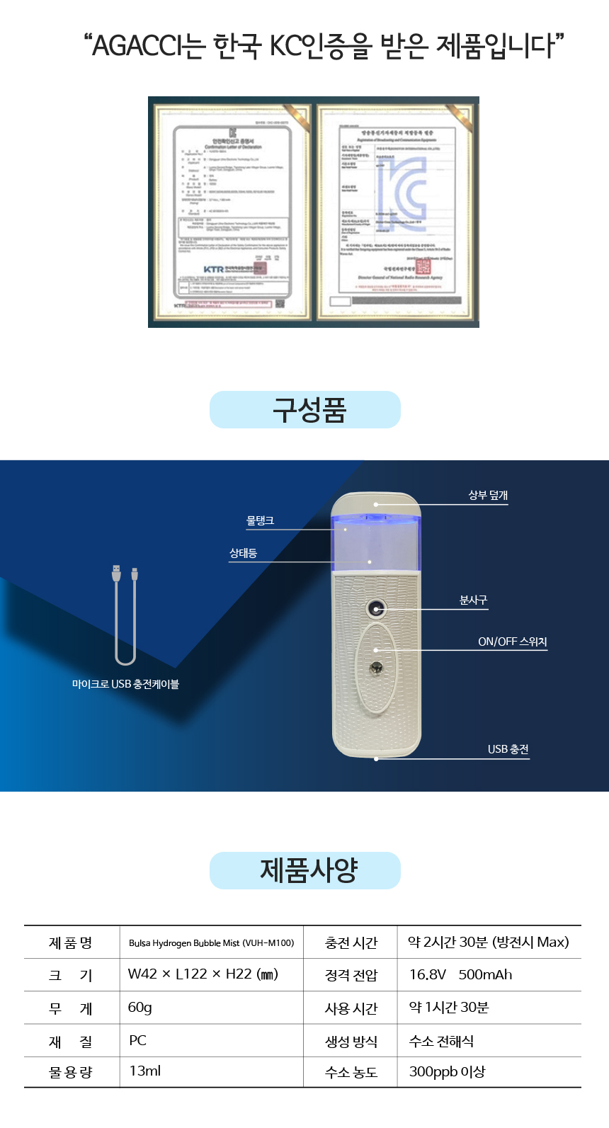 모델명 AGACCI 나노 수소 미스트