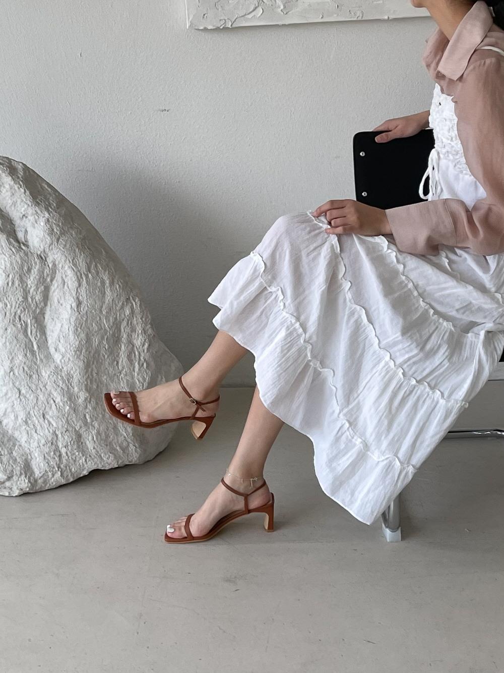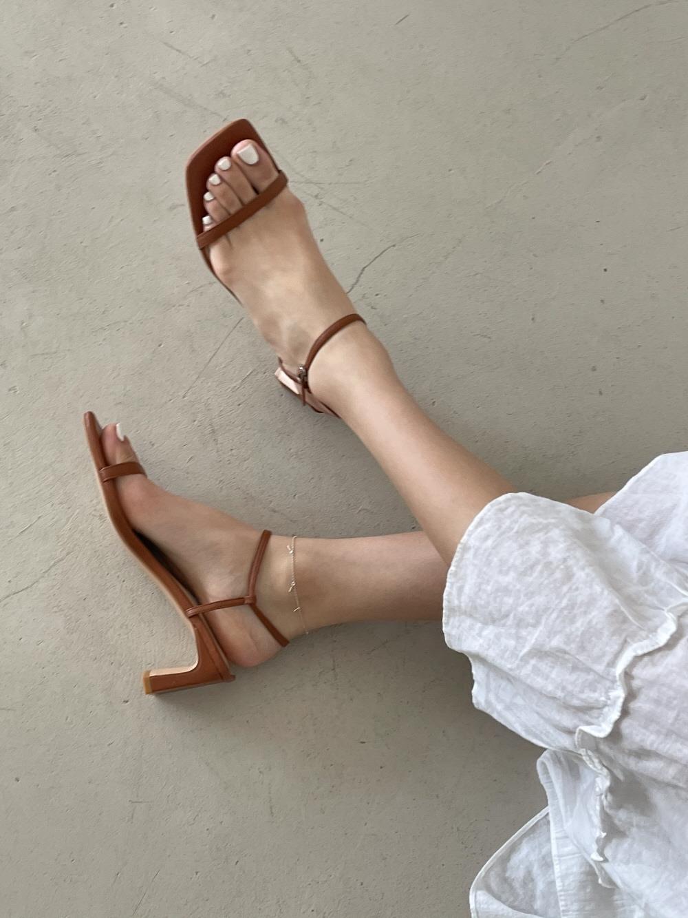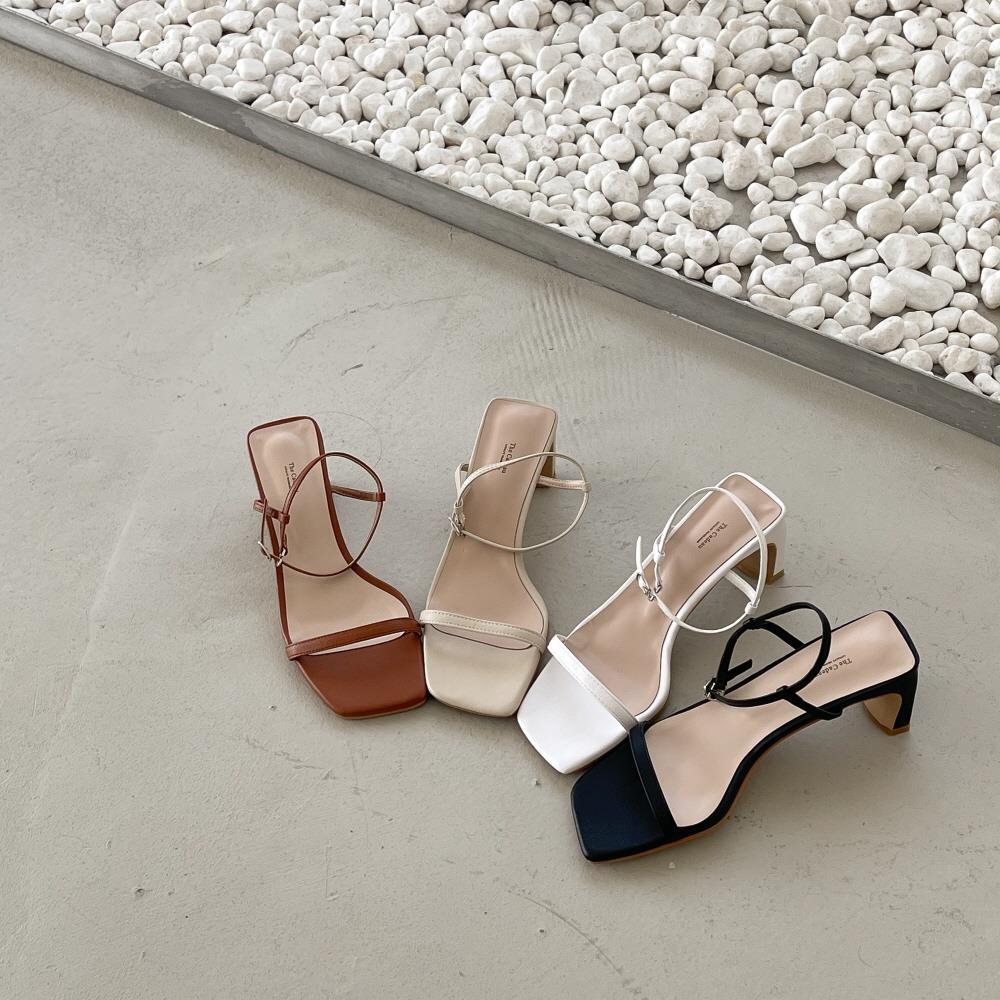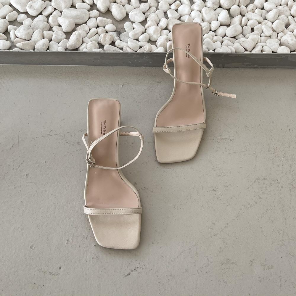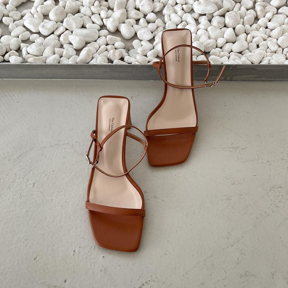 여성 여름 패션 신상 각진코 격자밴드 샌들