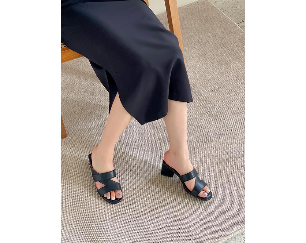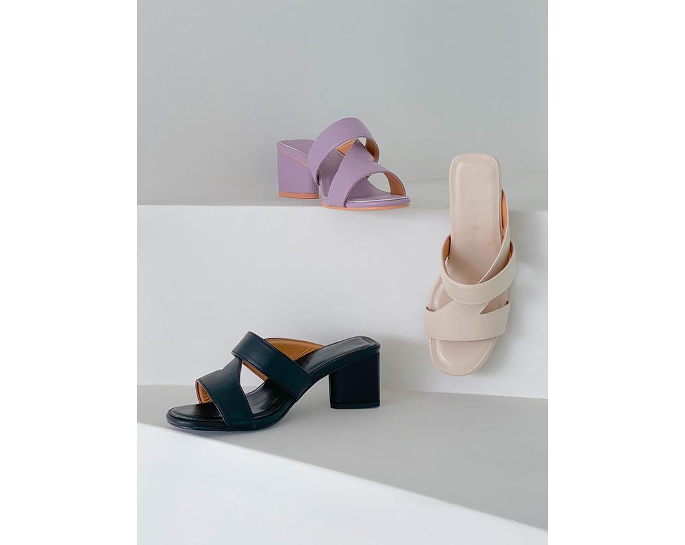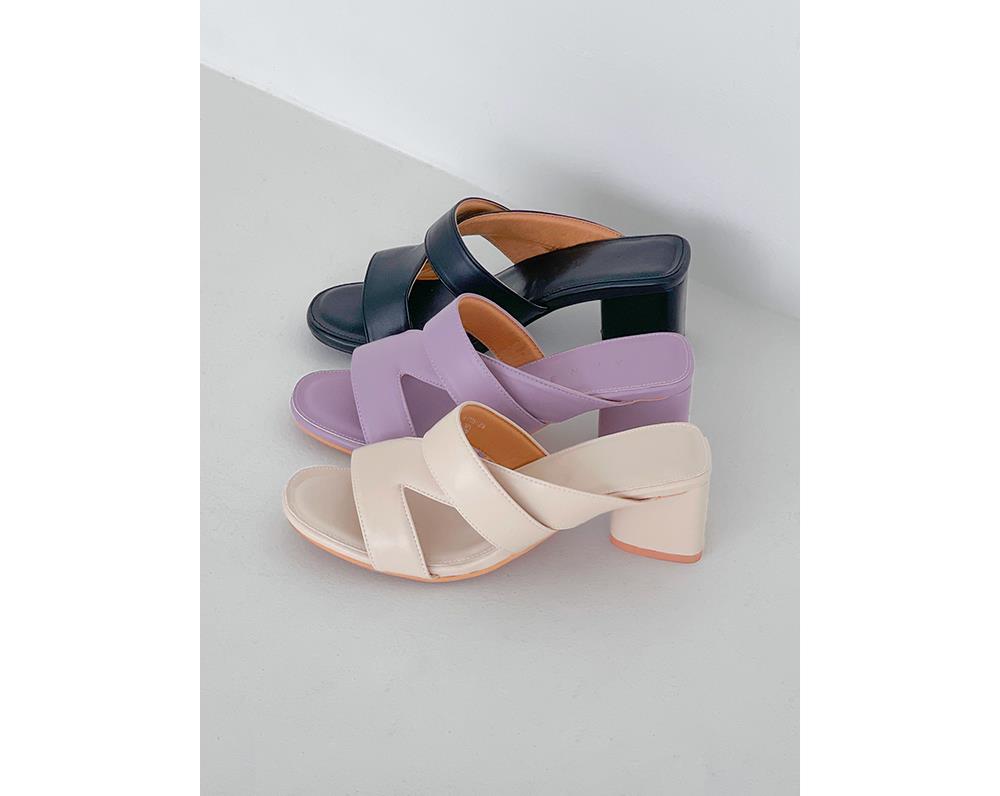 여성 벨트 굽높은 슬리퍼