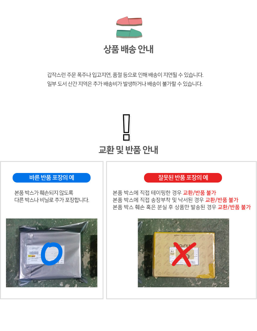 • - 단순 고객변심에 의한 반송 또는 교환의 경우(소요경비)