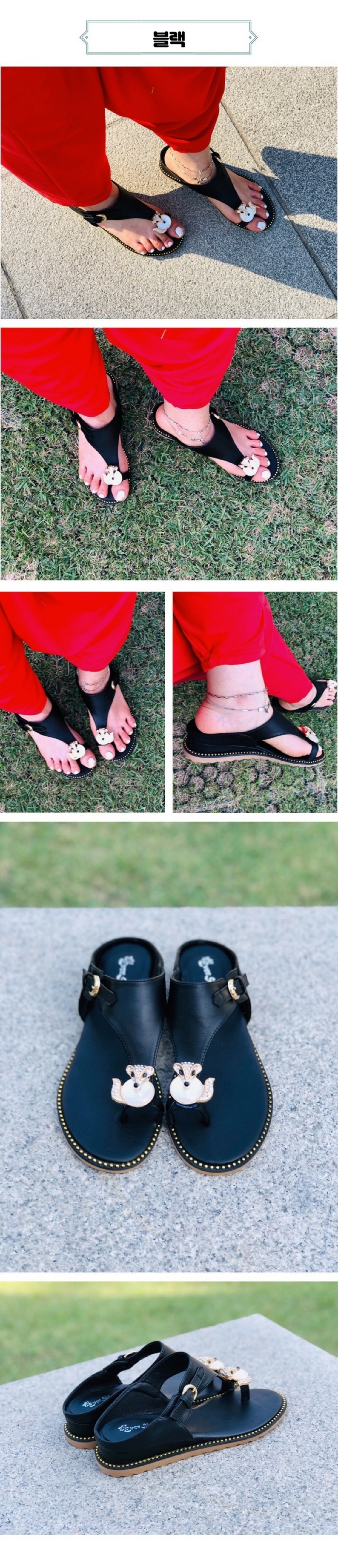 발편한 여우 보석 엄지 쪼리 슬리퍼 이미지/