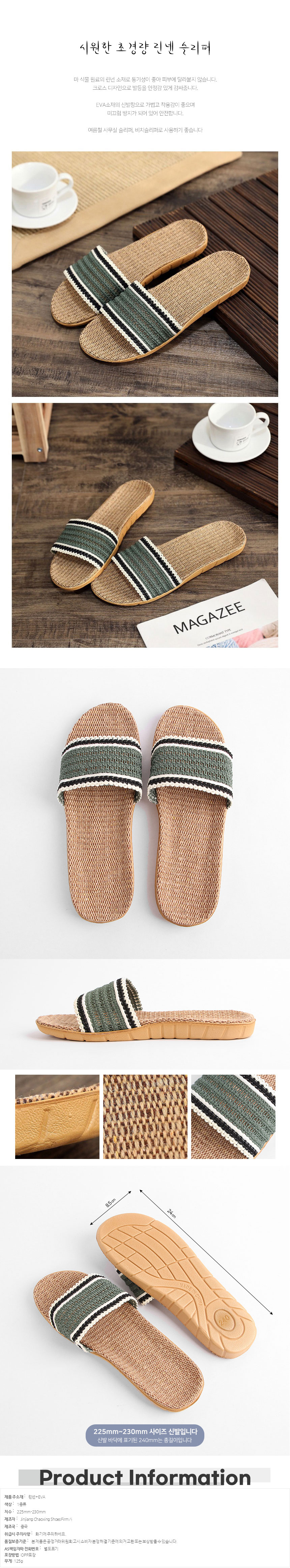 <상품명 : 가벼운 바캉스 린넨 슬리퍼 그린 225-30mm 회사슬리퍼>