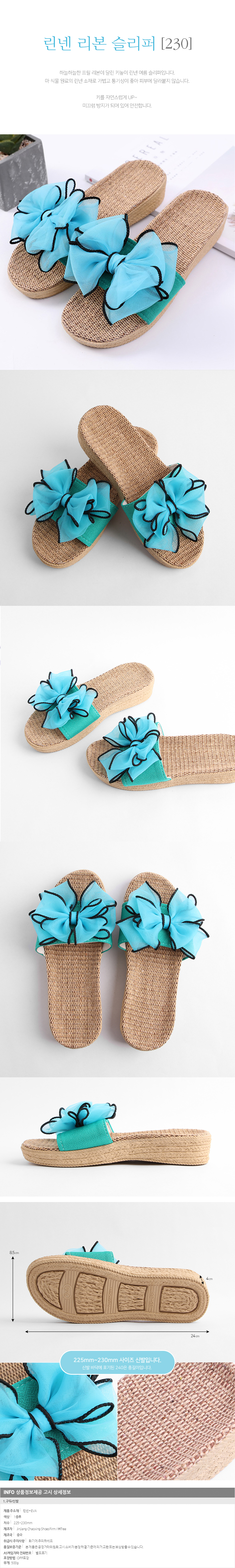 라탄 리본 린넨 비치 슬리퍼(블루) (225 230mm)