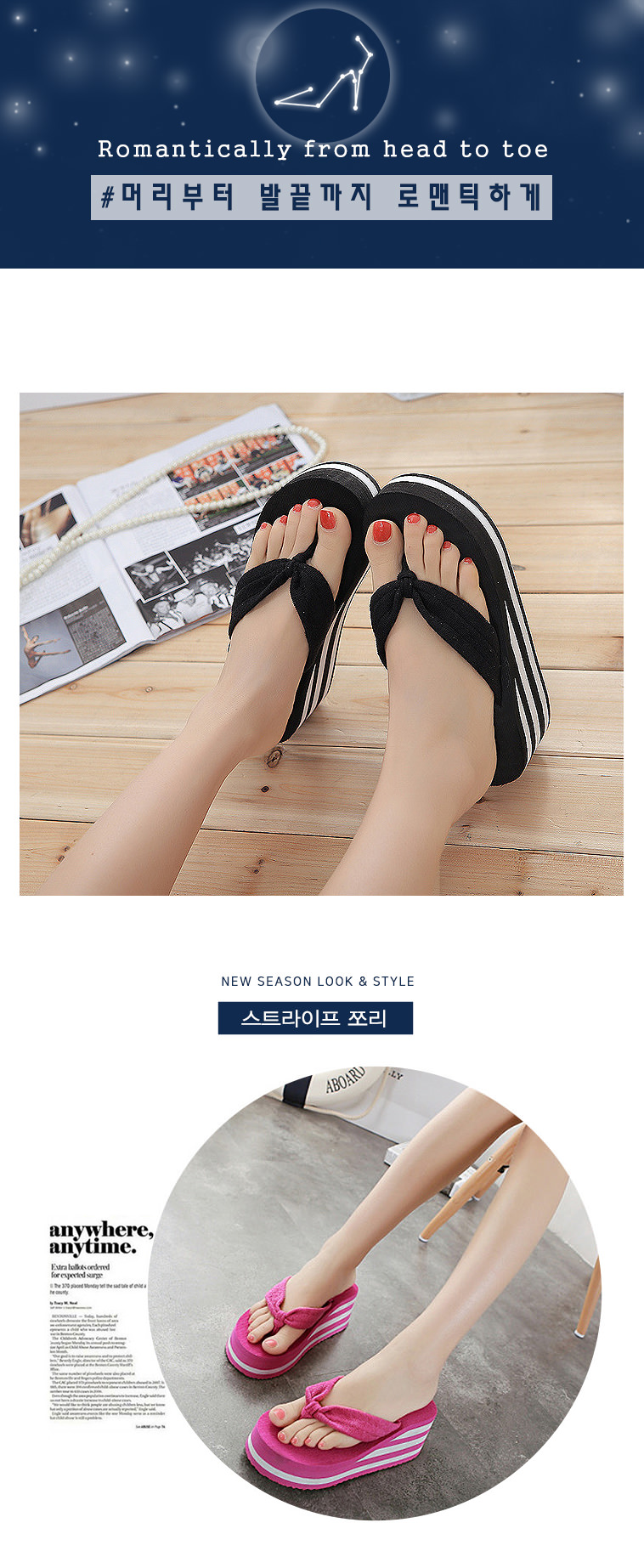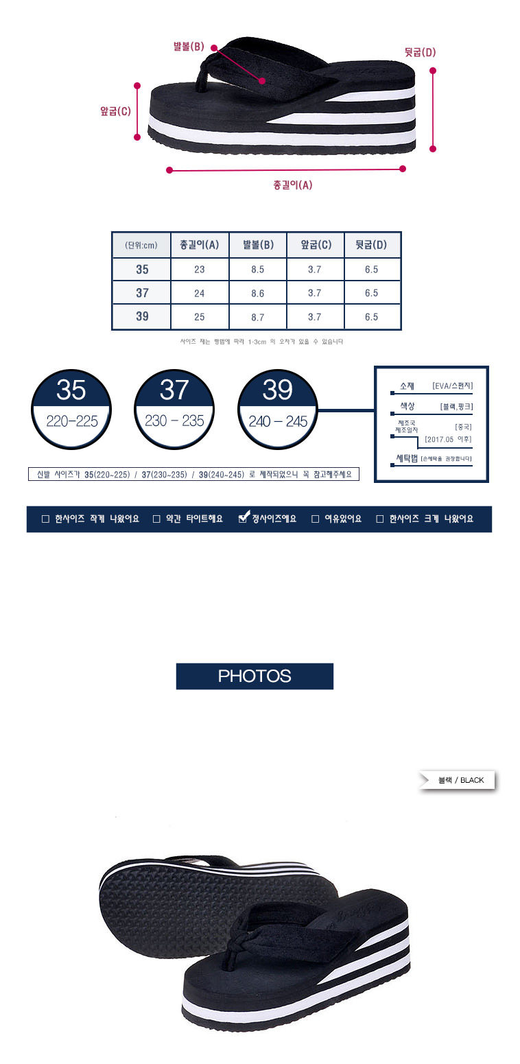 스트라이프쪼리 실내실외화 슬리퍼 키높이 스트라이프