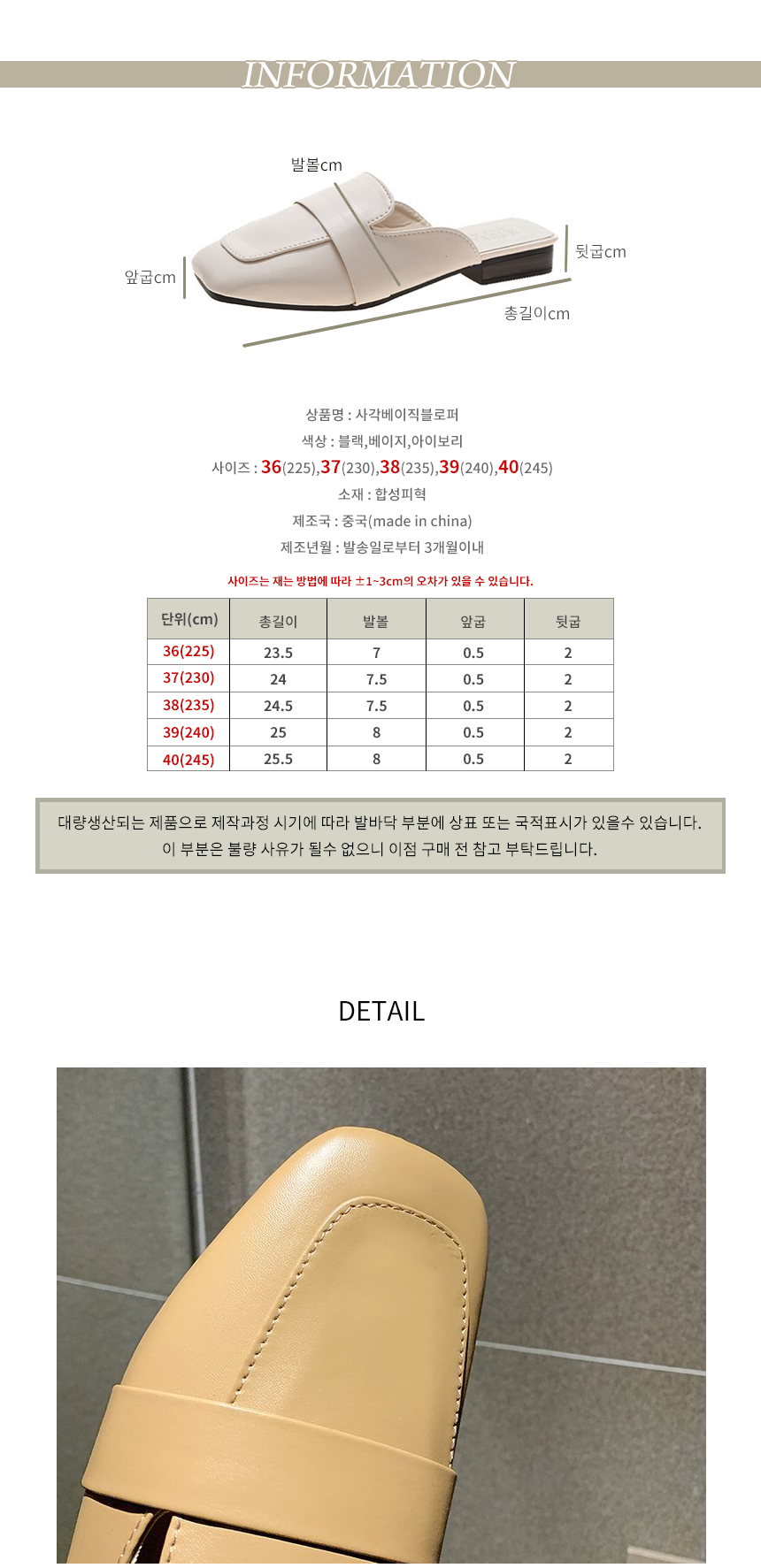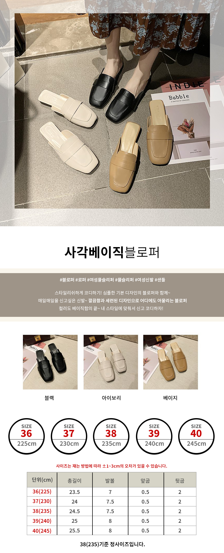 • 치수:36(225),37(230),38(235),39(240),40(245)
