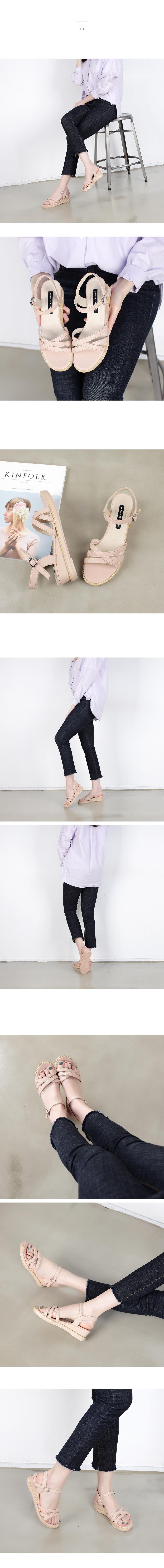 여자끈샌들 슈즈 끈샌들 앵글 통굽 여성 빅사이즈 힐 이미지/