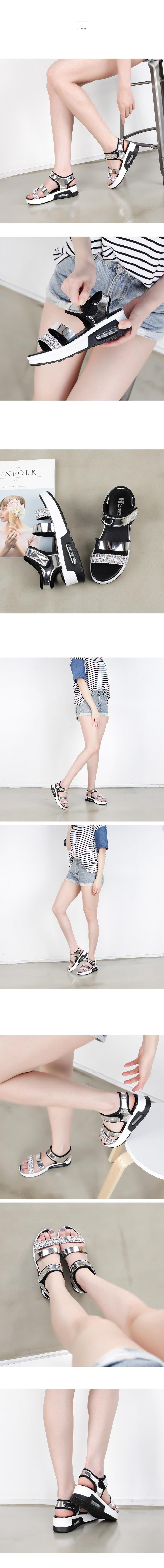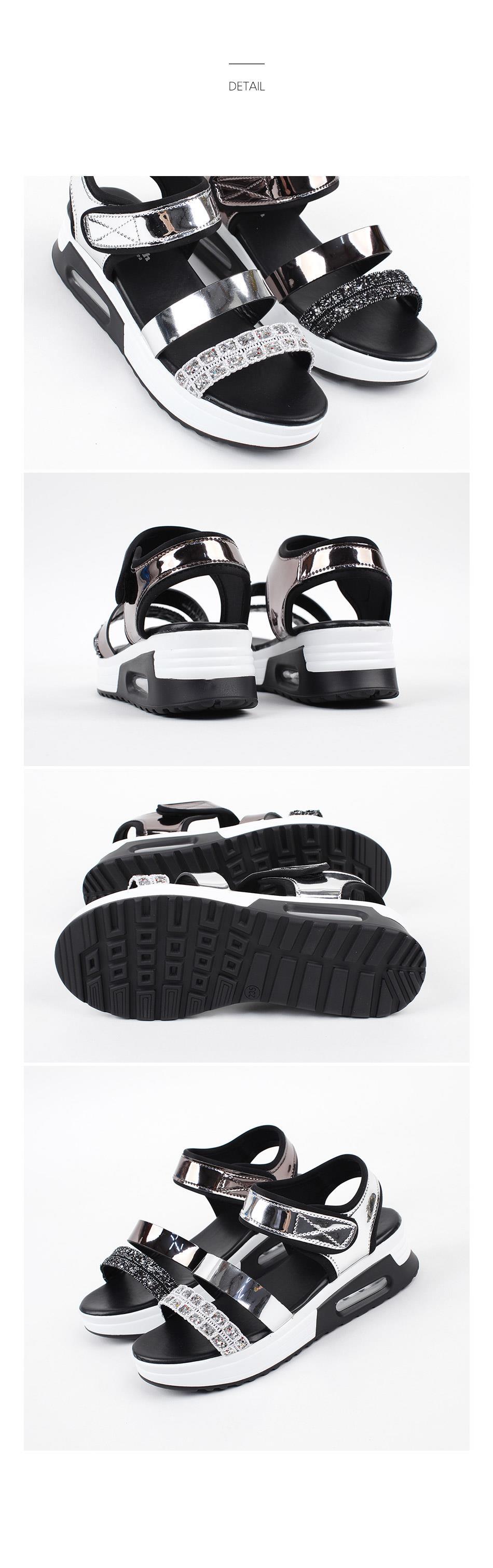 여성 양가죽 메탈릭 통굽 샌달