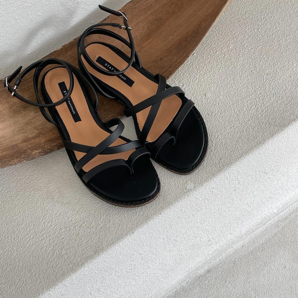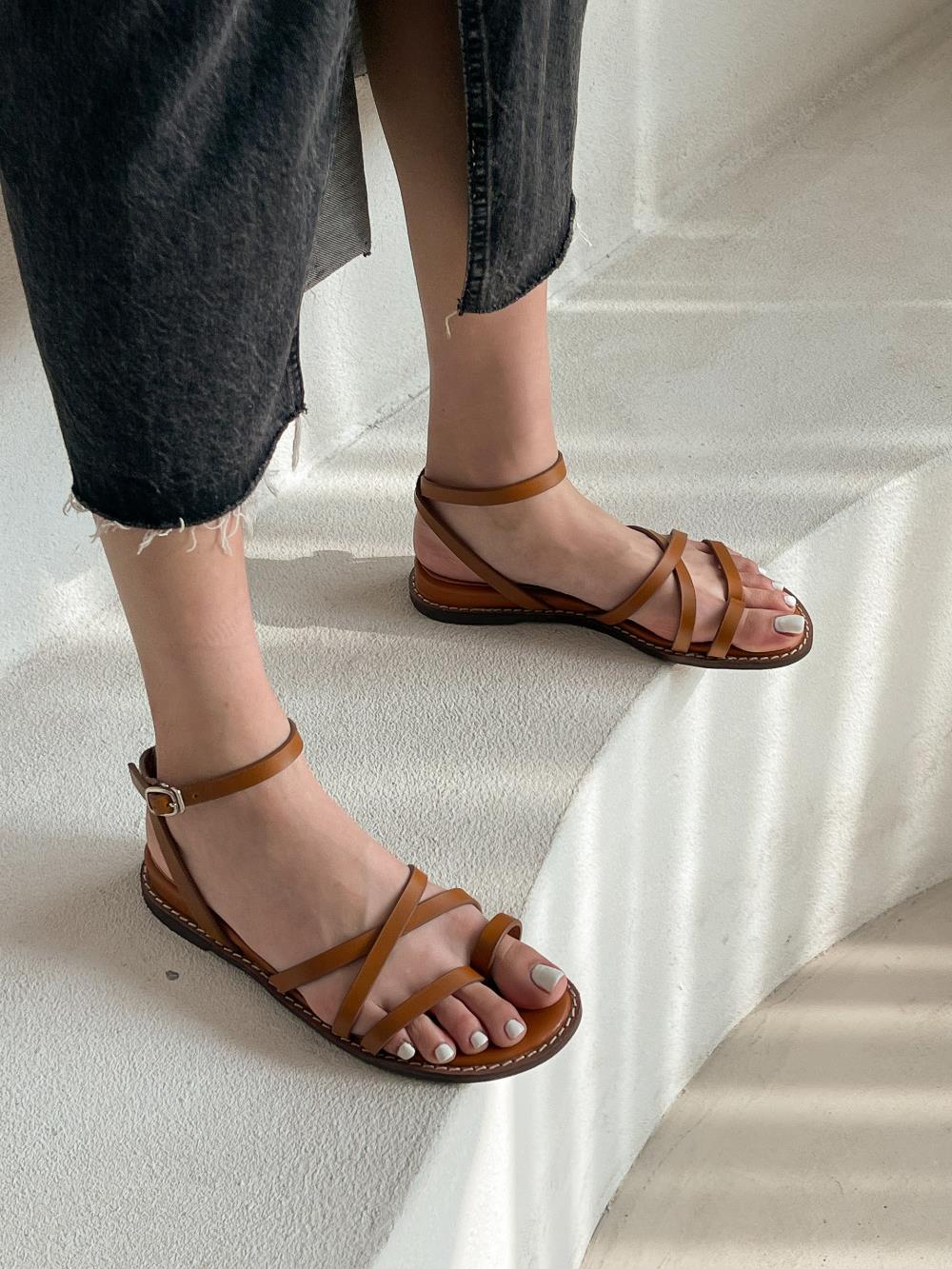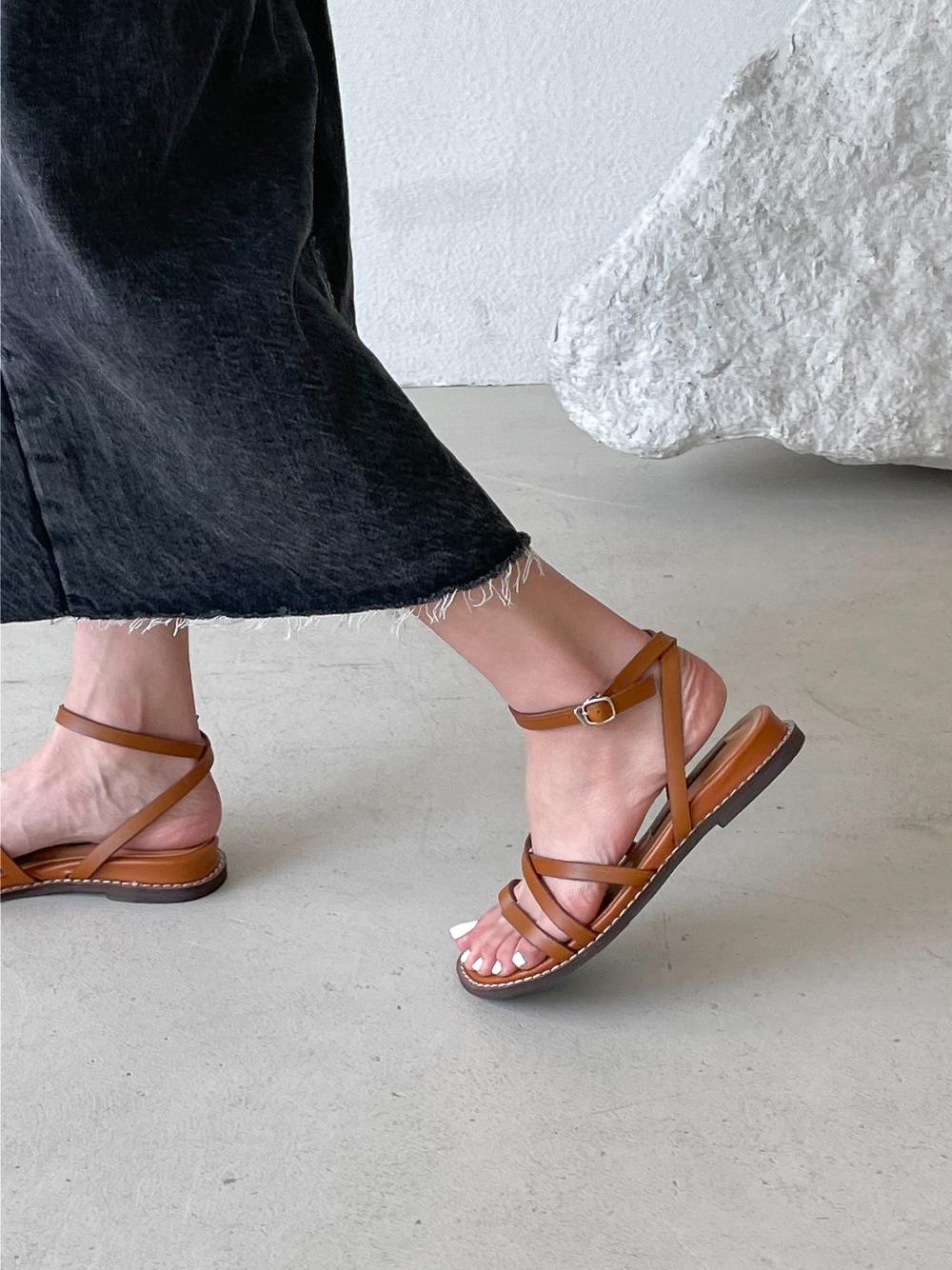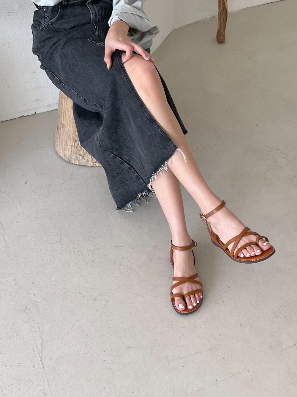 웨지 힐 앵글 스트랩 슈즈 가을 플랫 여름샌들 샌들