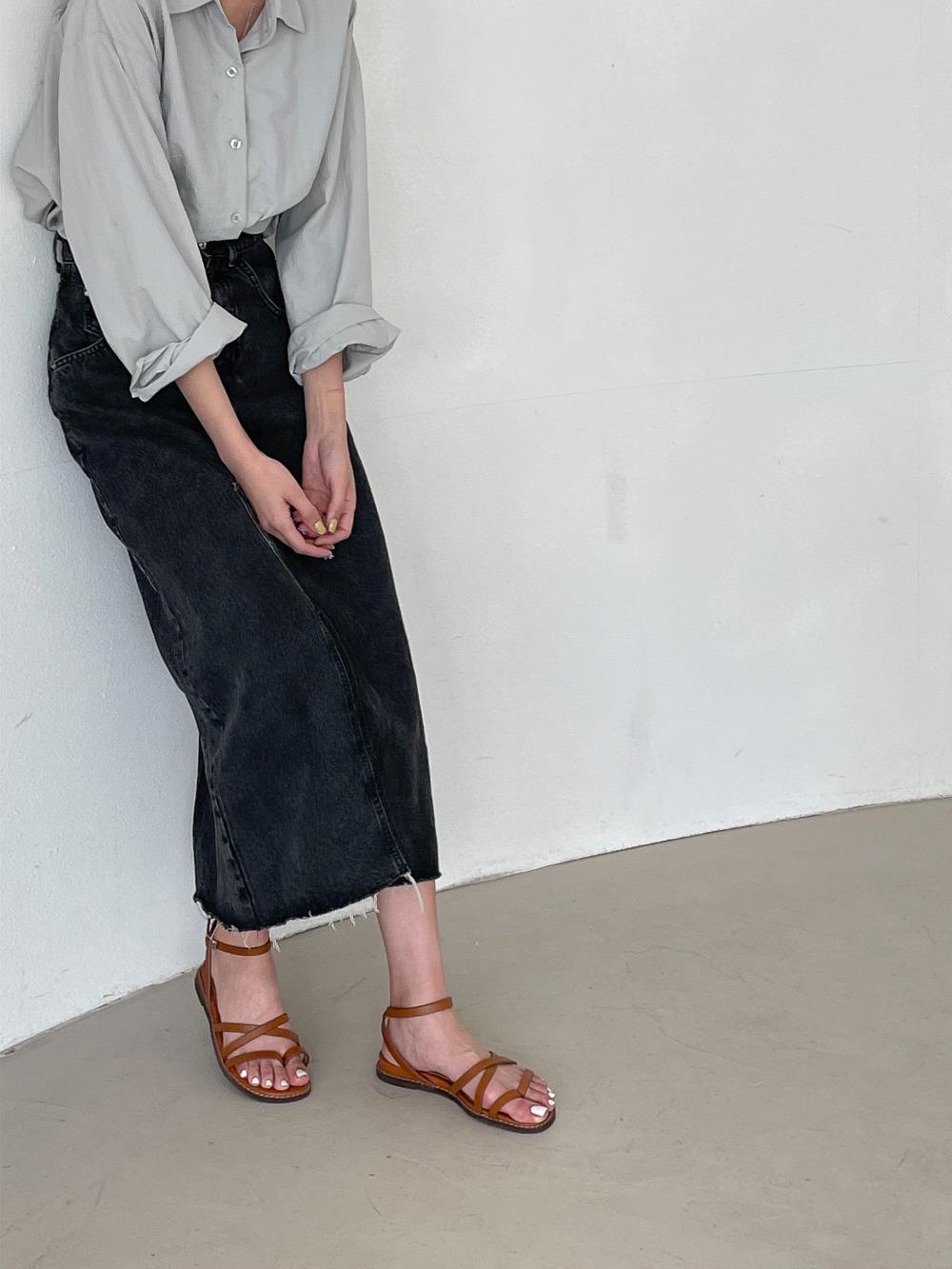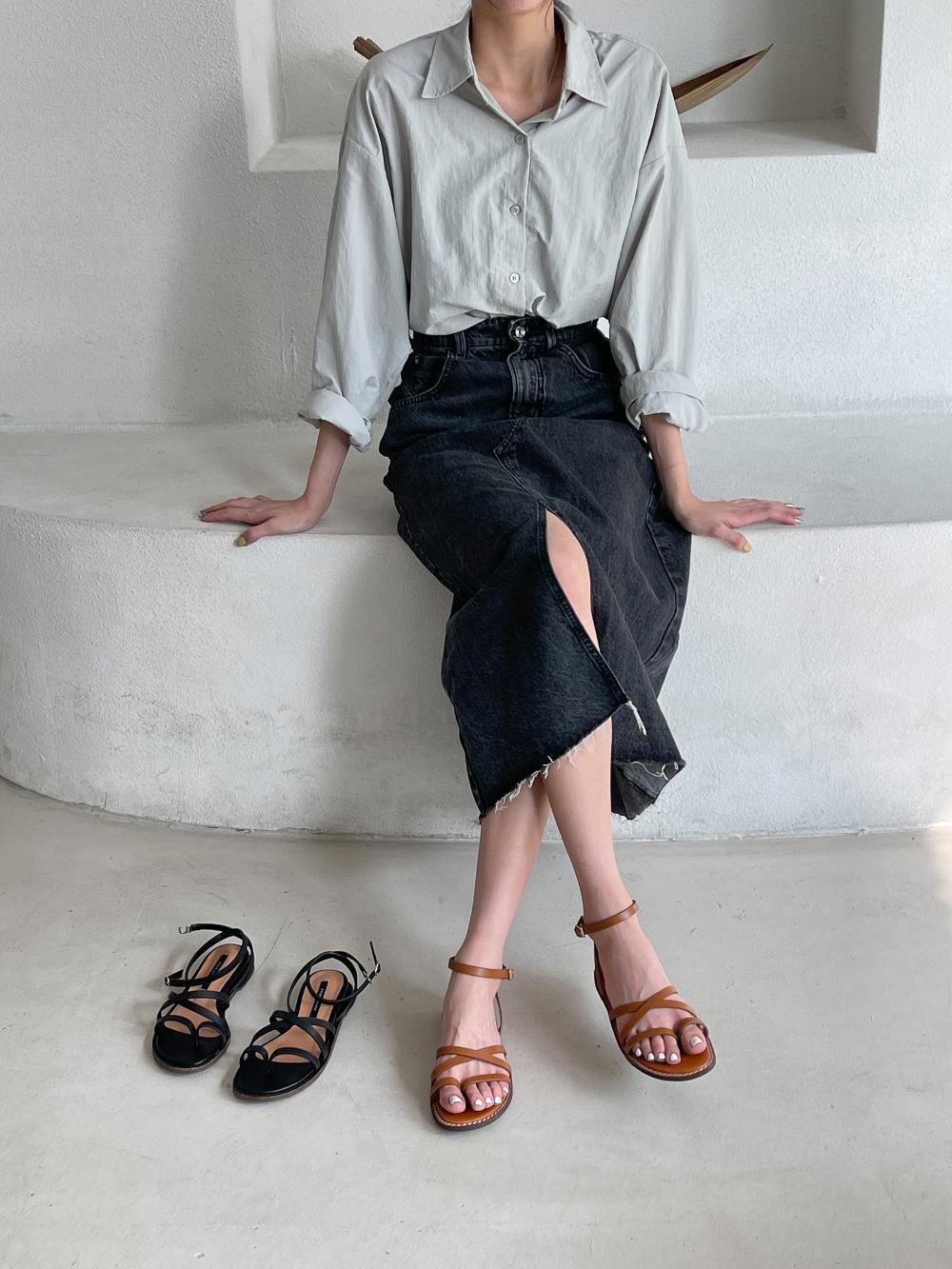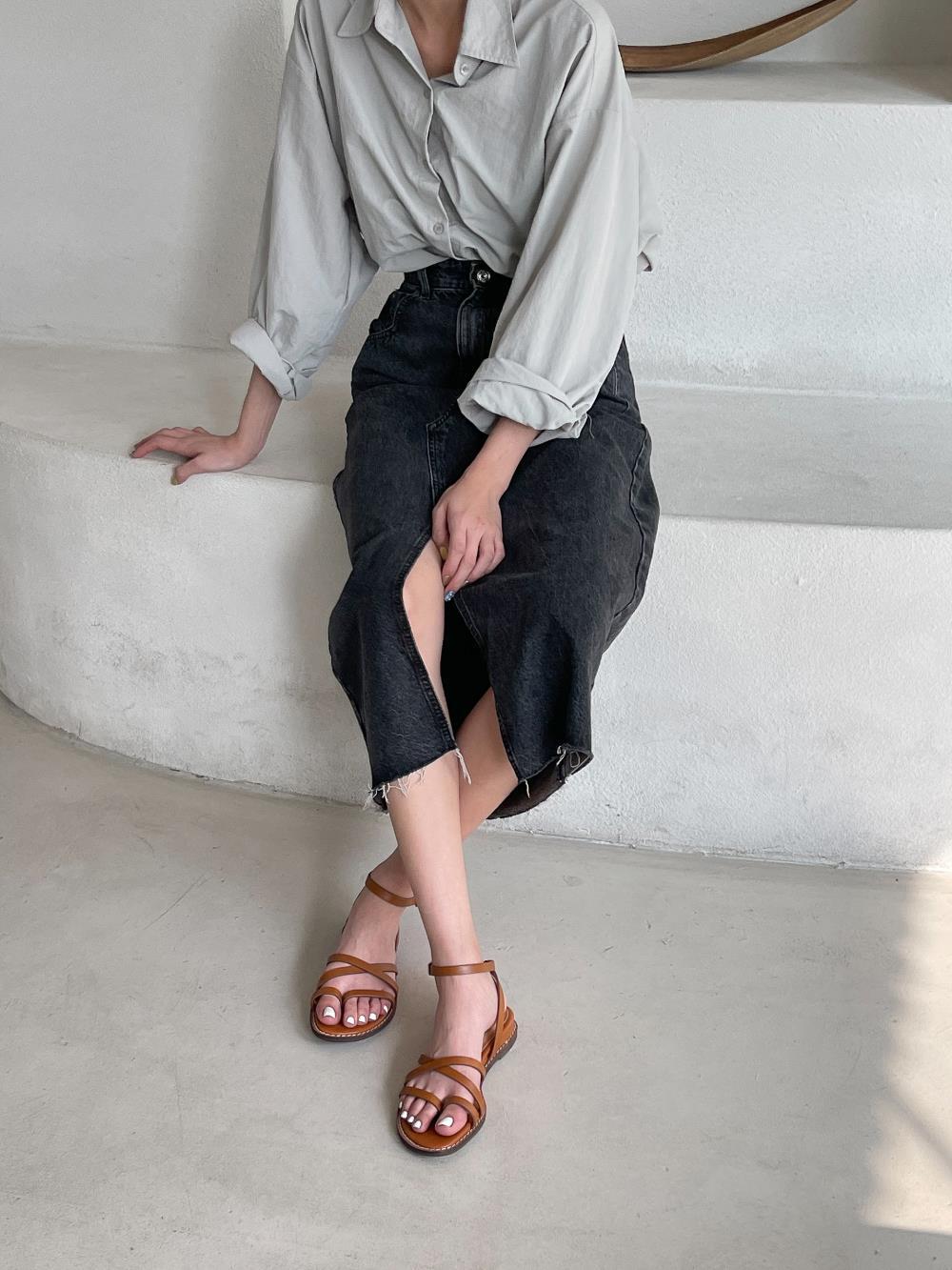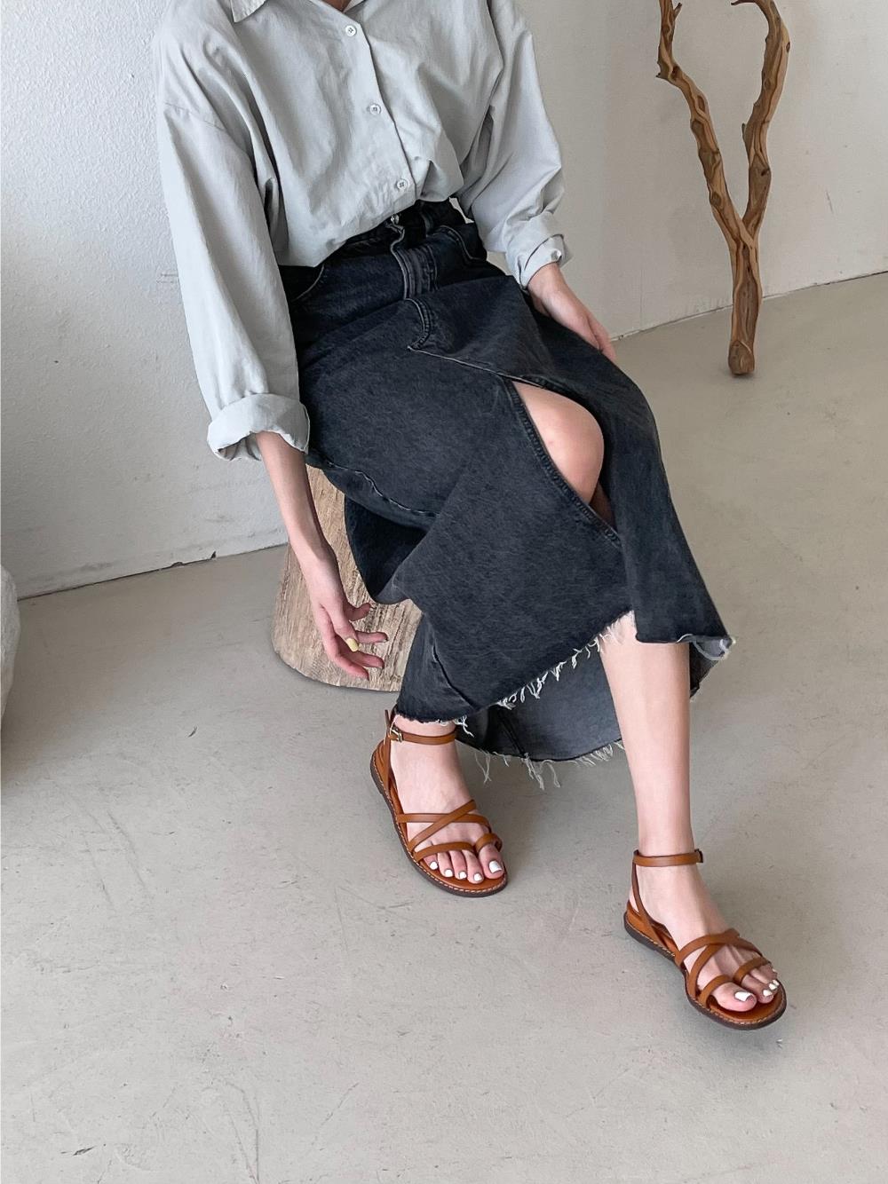 웨지 힐 앵글 스트랩 슈즈 가을 플랫 여름샌들 샌들