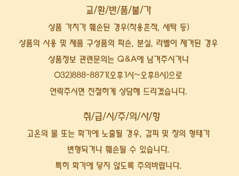 • 초기제품 이상의 경우 동일한 제품으로 1:1 교환원칙, 사용후 제품이상은 A/S를 원칙으로 합니다.