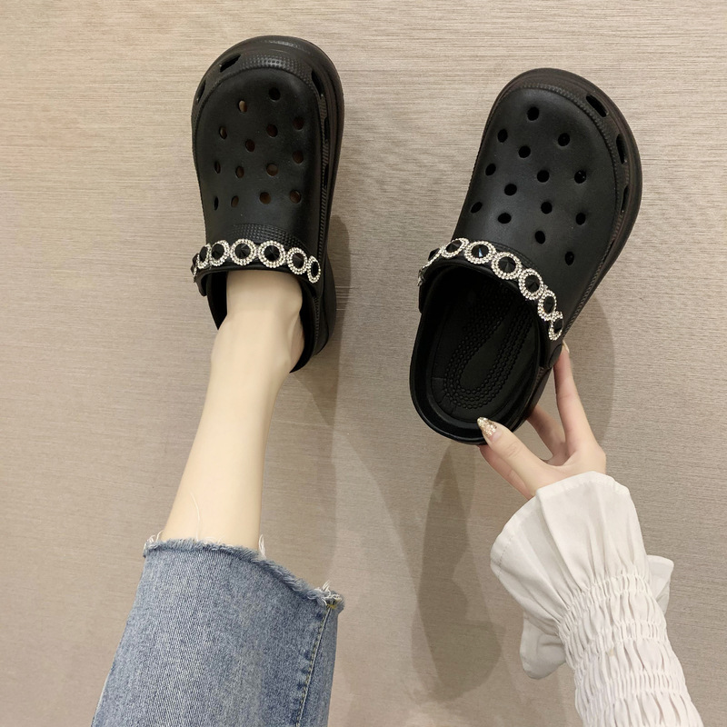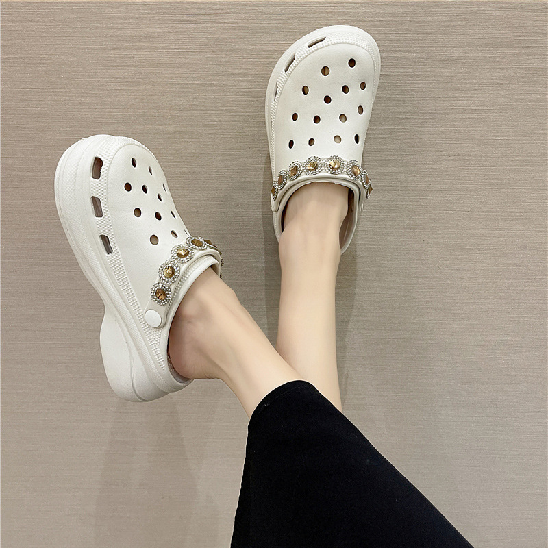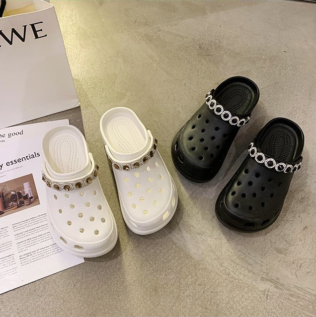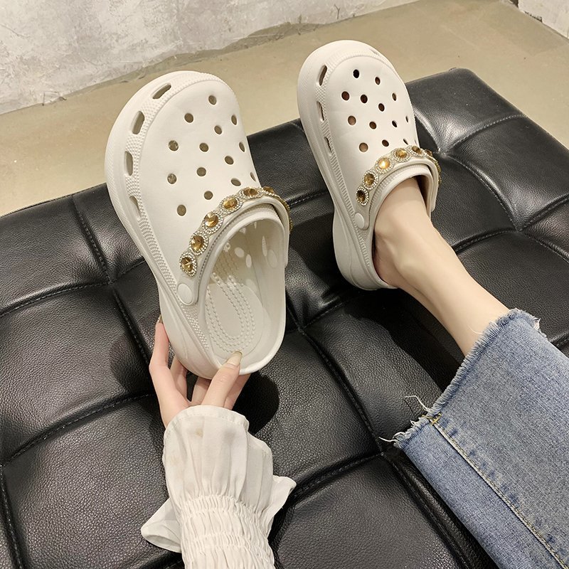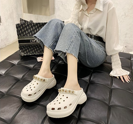 큐빅 펀칭슬리퍼 크록스st 키높이 6cm 회사 여름 샌들 여성 슬리퍼