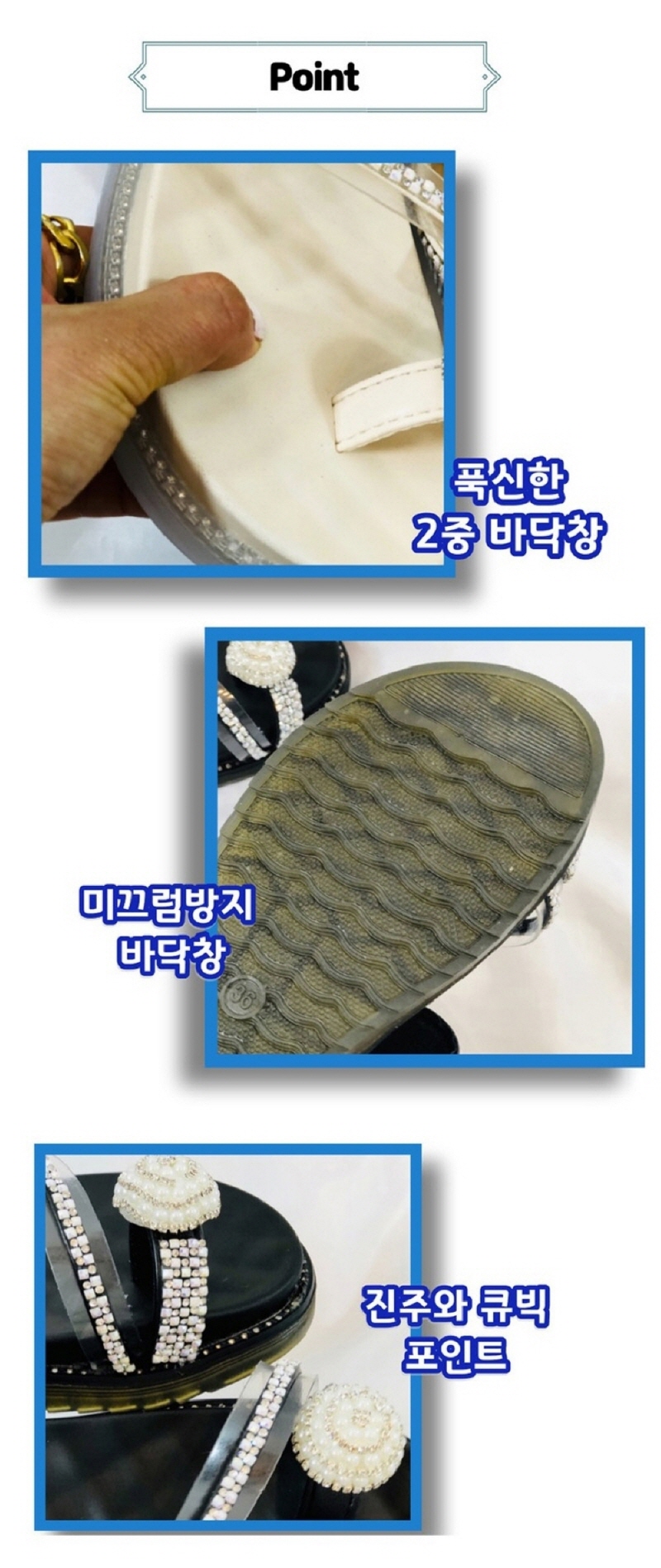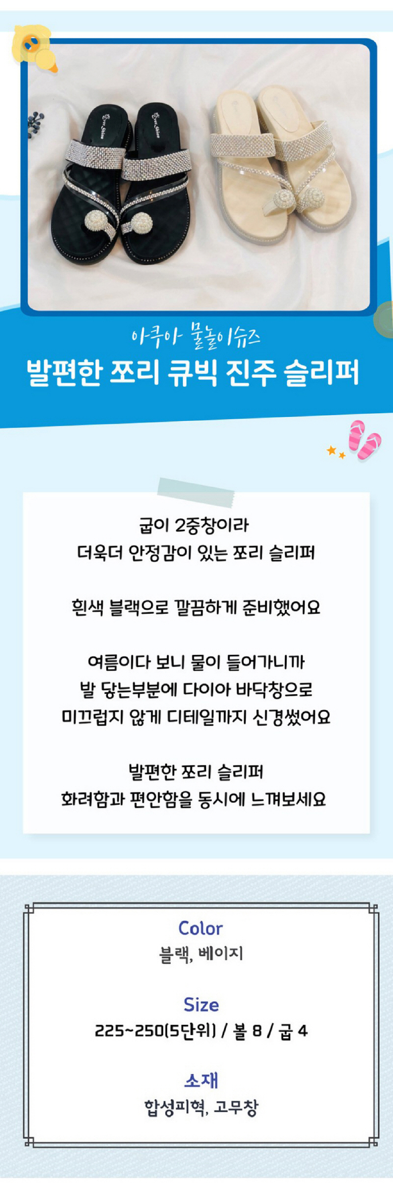 발편한 엄지 큐빅 쪼리 슬리퍼
