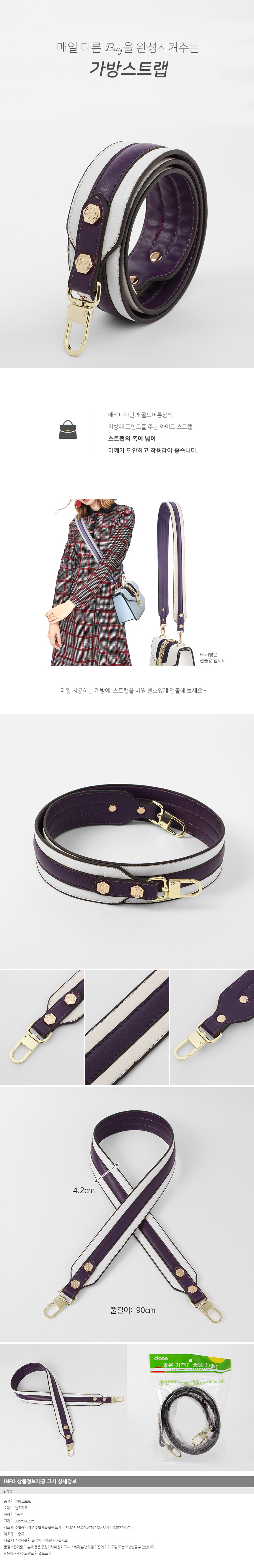 투컬러 와이드 가방스트랩(90cm) (퍼플) 이미지/