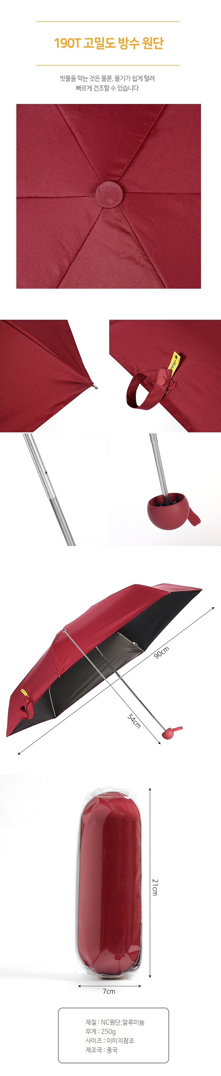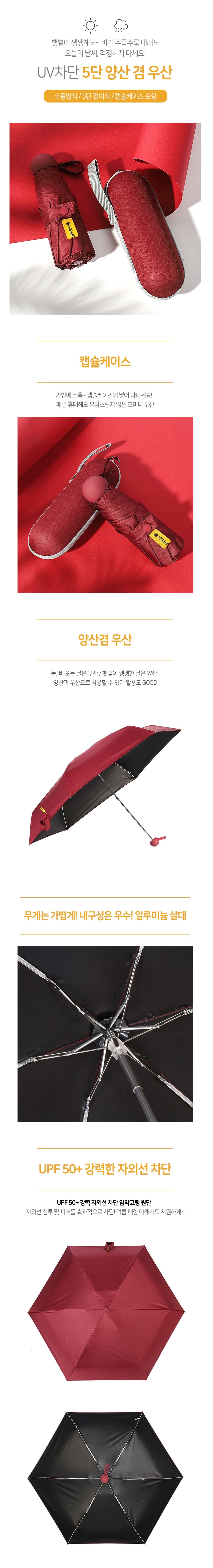 이쁜 와인 암막 5단 양산겸 우산 작은 휴대 캡슐우산 이미지/
