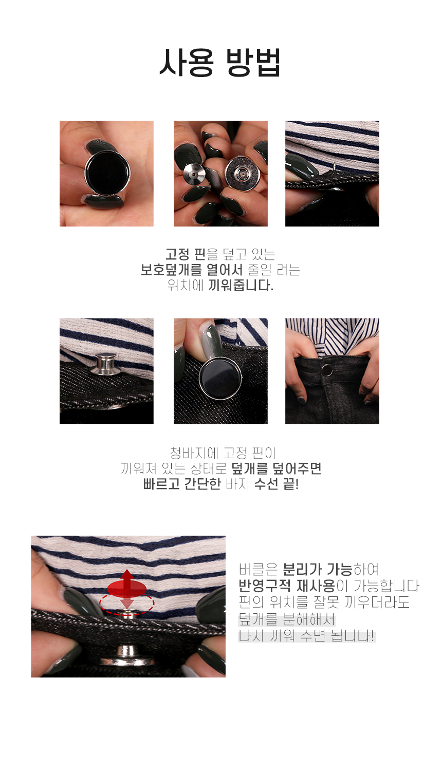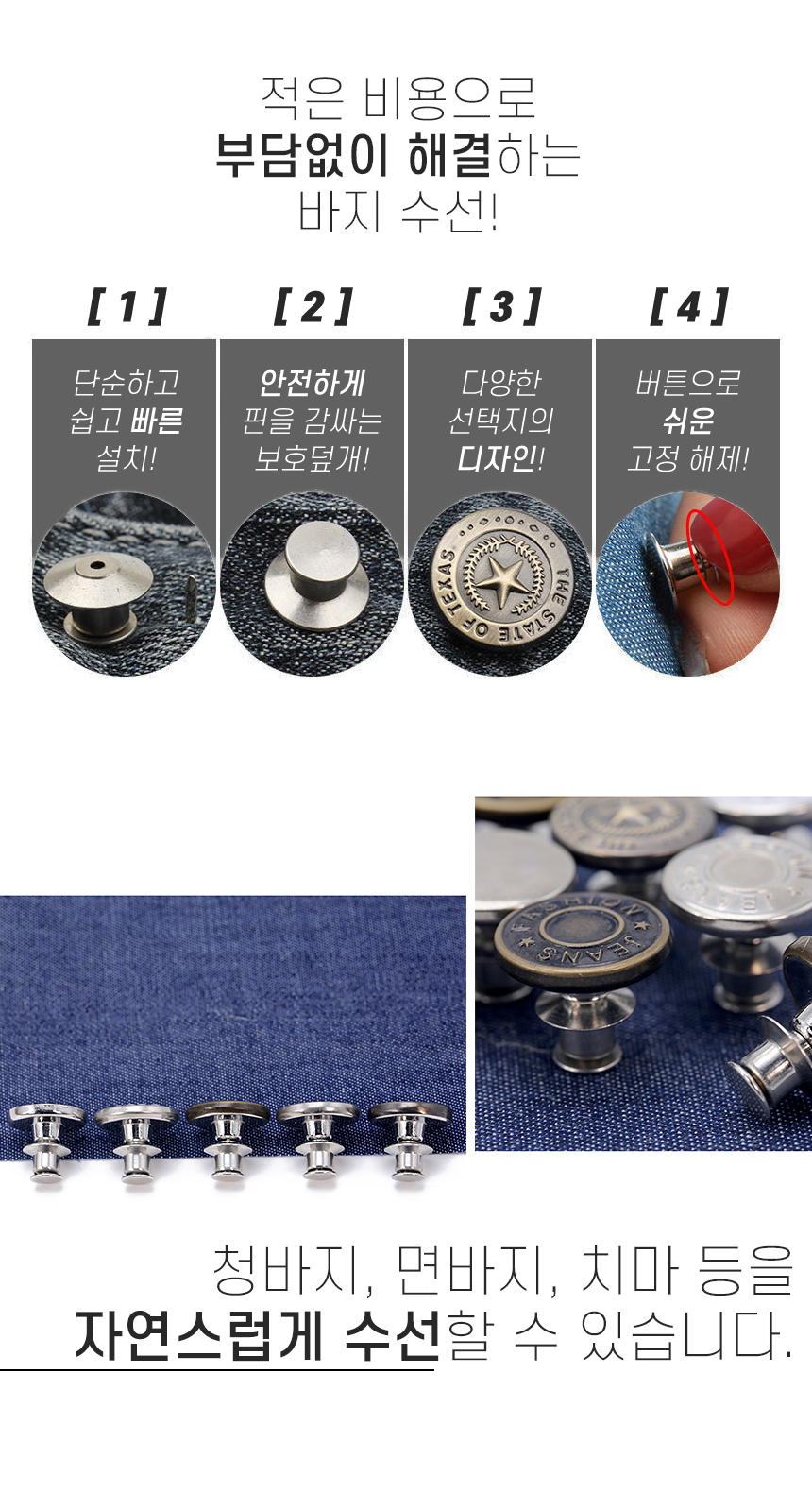 바지 허리 줄이기 퍼펙트핏 버튼 청바지 수선 요술 단추 확대버클