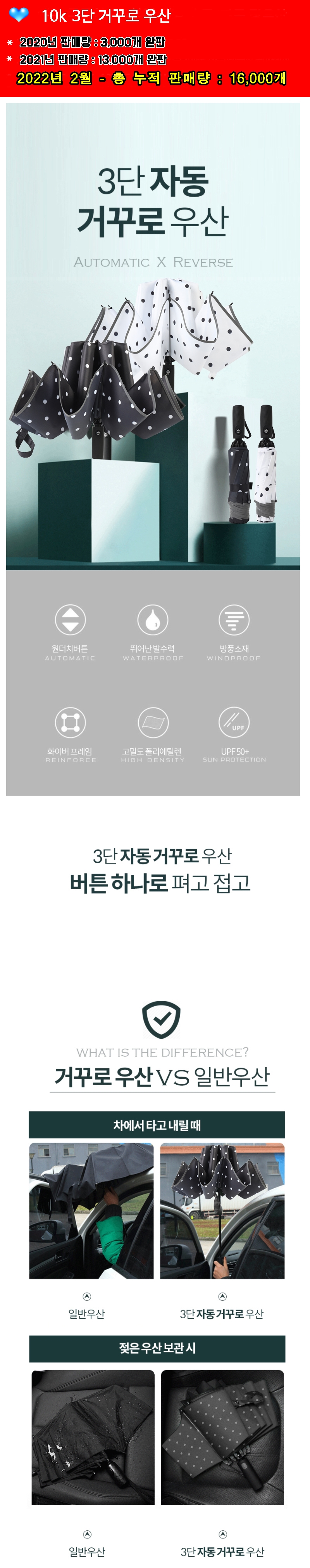 10k 땡댕이 3단 자동 거꾸로 우산 이미지/