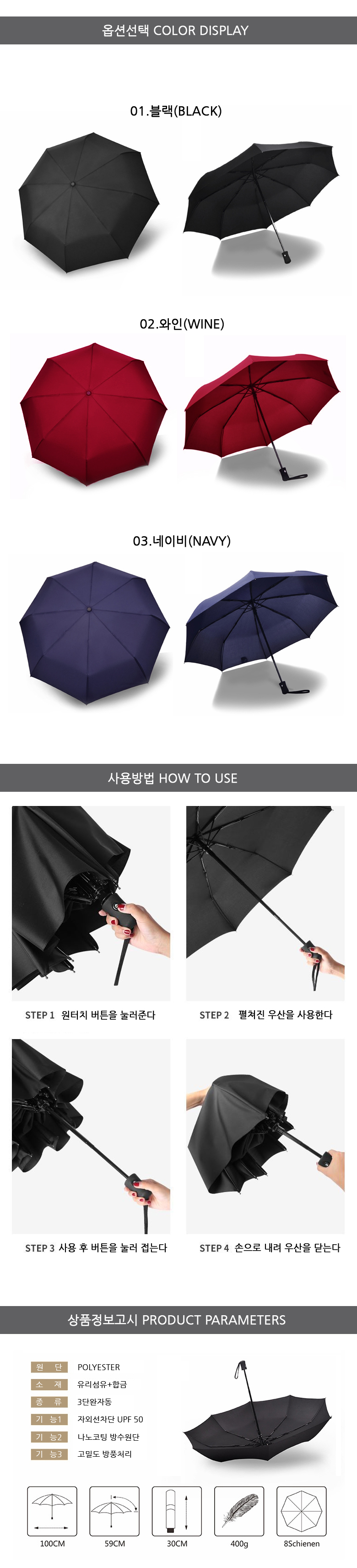 8K 프라임 완자동 3단 양우산 우산 이미지/