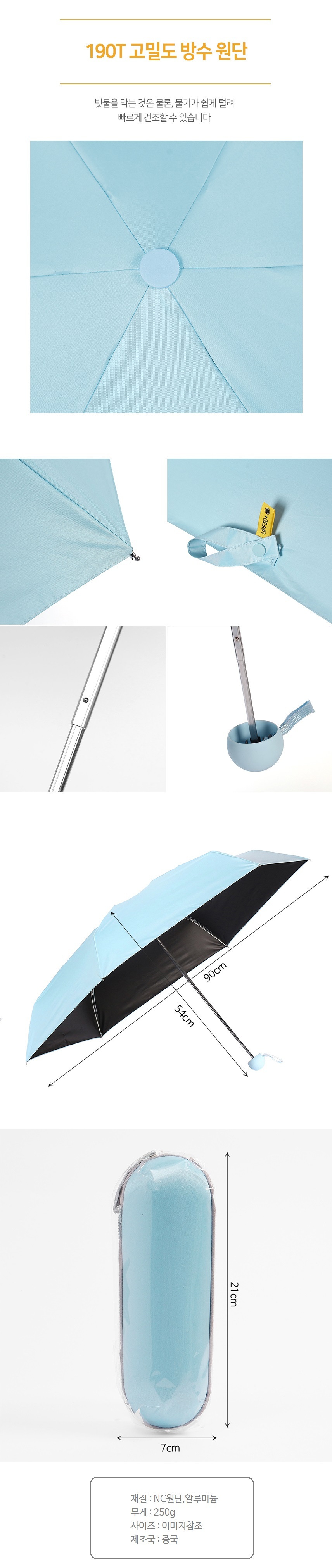 UV차단 암막 5단 양산겸 우산 스카이 작은 캡슐우산 이미지/