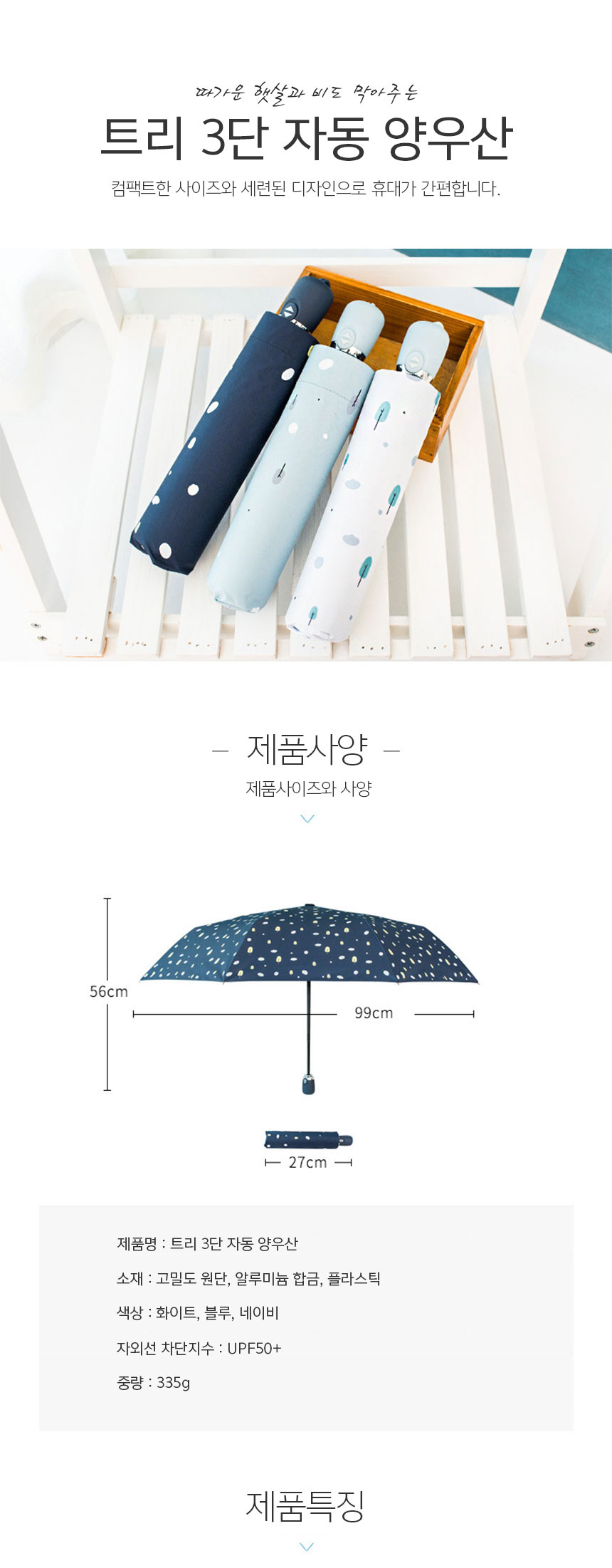 트리우산 UV차단 자동우산 3단 양우산 암막우산