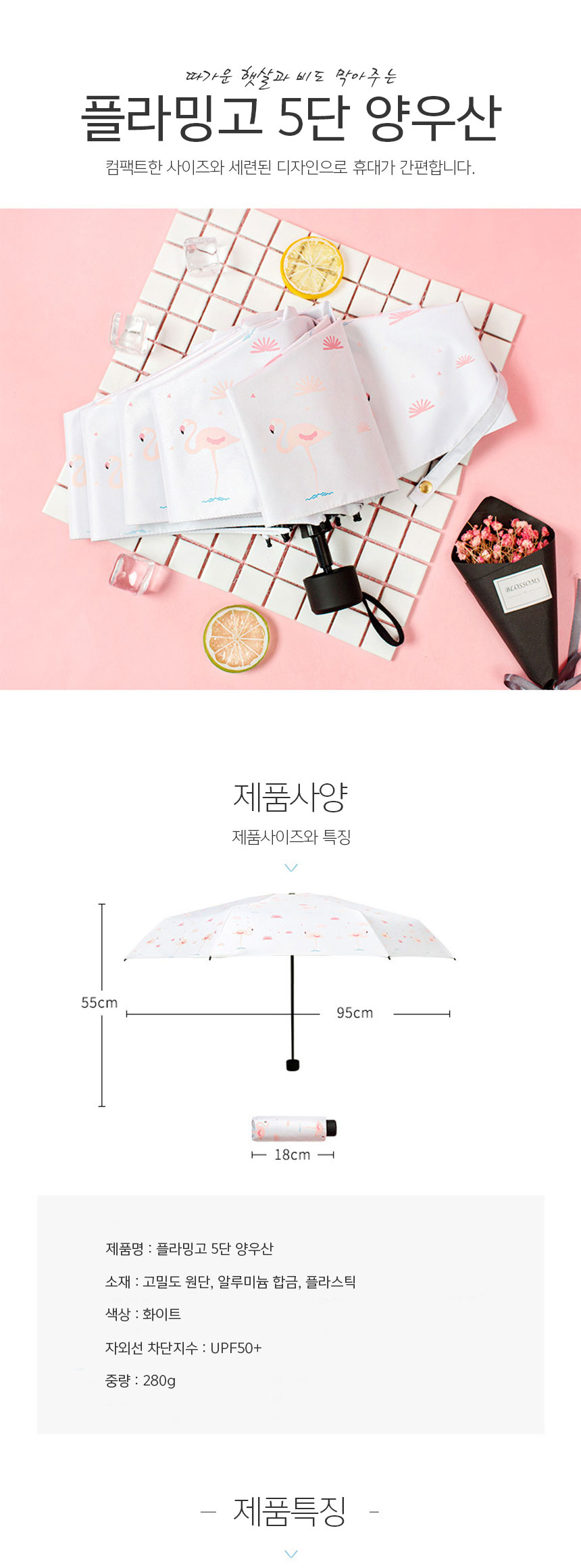 플라밍고우산 UV차단 초경랑 5단 양우산 암막우산