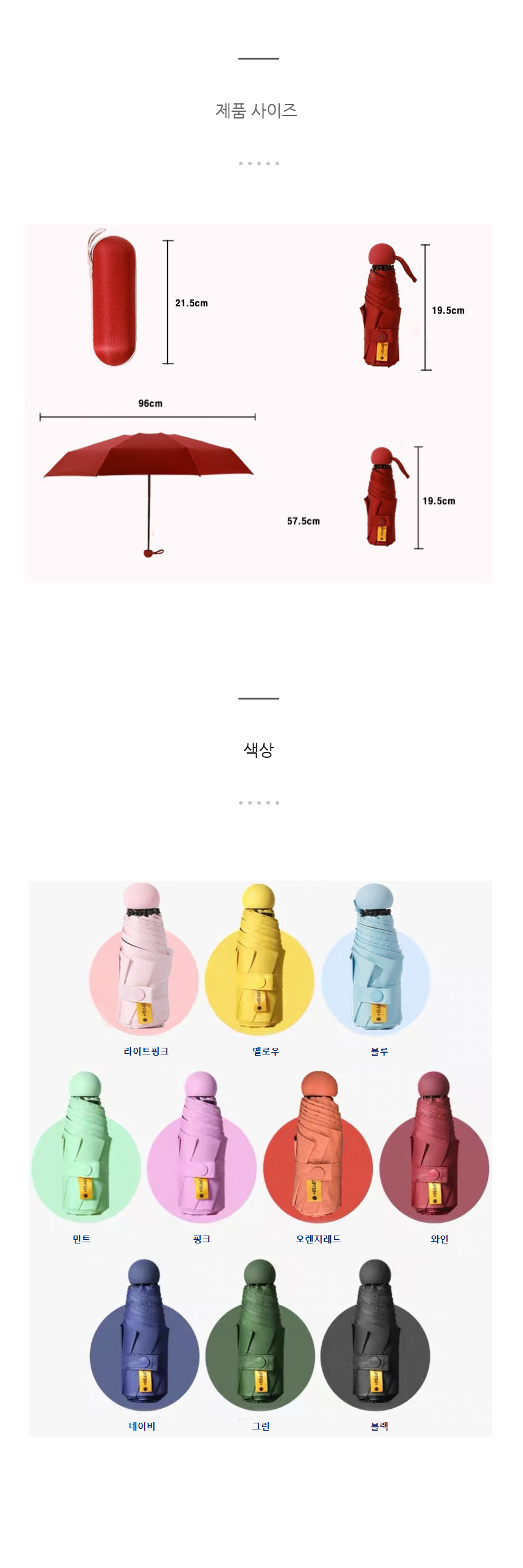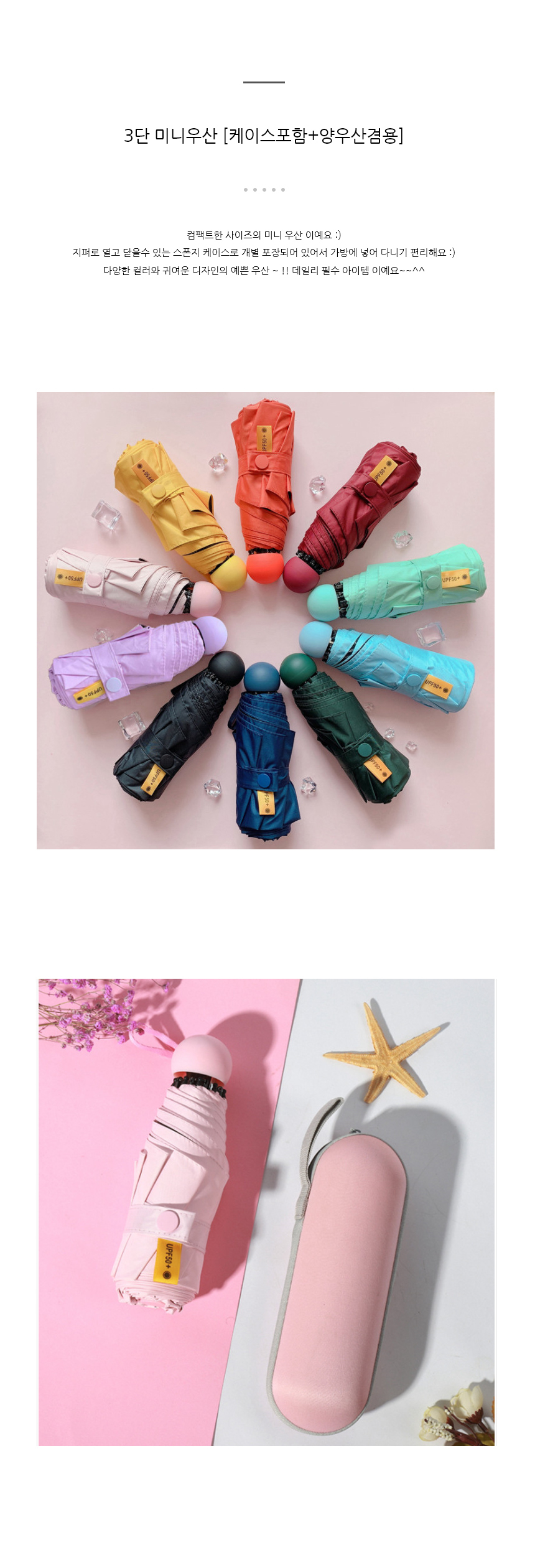 고급 방수 3단 미니우산(케이스포함)10컬러 이미지/