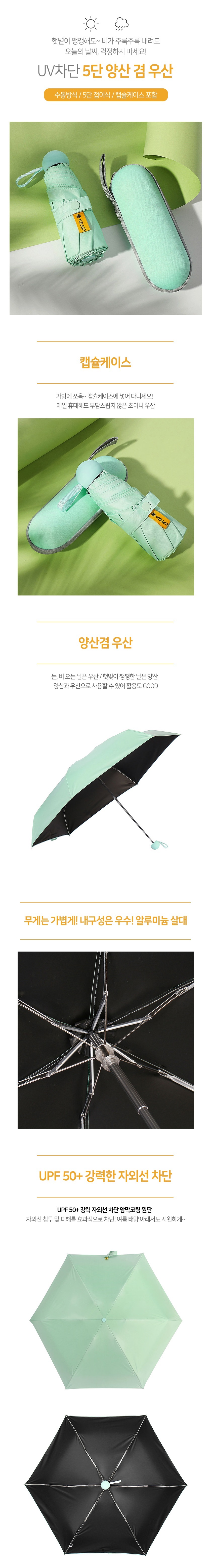 이쁜 민트 암막코팅 5단 양산겸 우산 작은 캡슐우산
