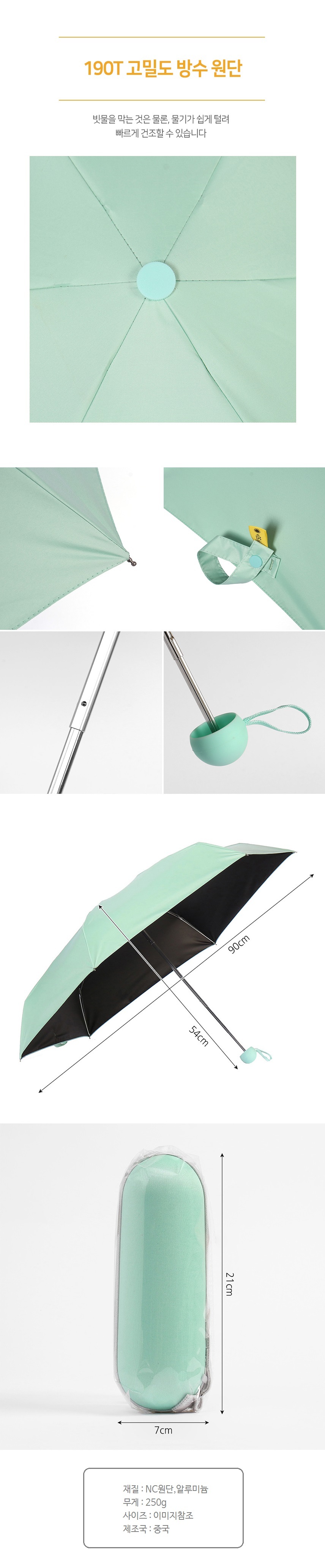 이쁜 민트 암막코팅 5단 양산겸 우산 작은 캡슐우산 이미지/