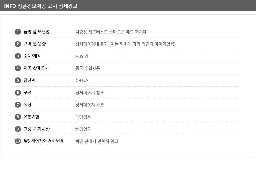 차량용 헤드레스트 스마트폰 패드 거치대 태블릿PC용
