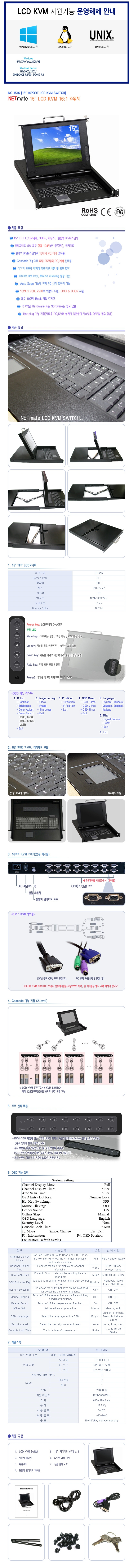 기업형 15인치 LCD KVM 스위치 161 스위치/CASCADE /1024x768 해상도 이미지/
