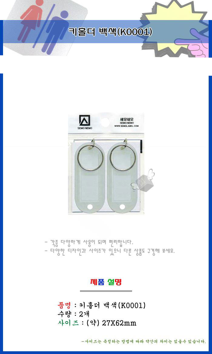 단색 네임택 키홀더 2개입-백색 차량열쇠고리
