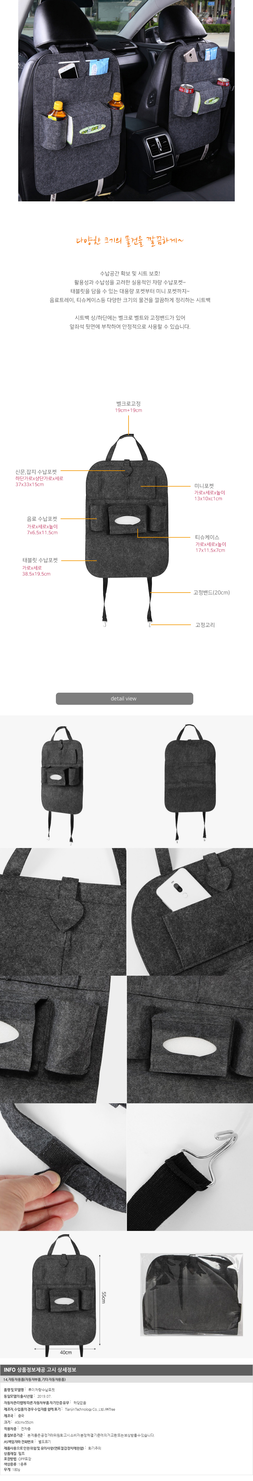루이 차량 수납포켓(다크그레이) 이미지/