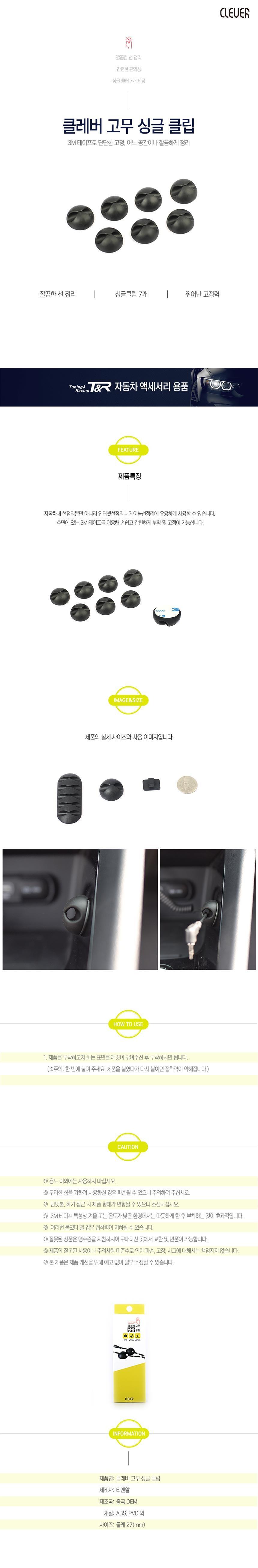 차량수납 케이블정리 클립 싱글 고무 클레버 선정리