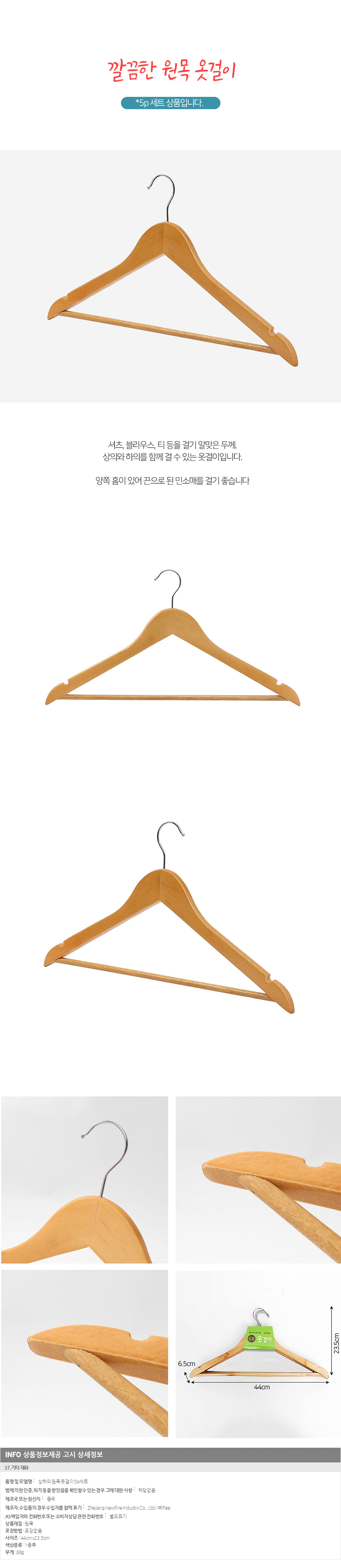 상하의 원목 옷걸이 5p세트 이미지/
