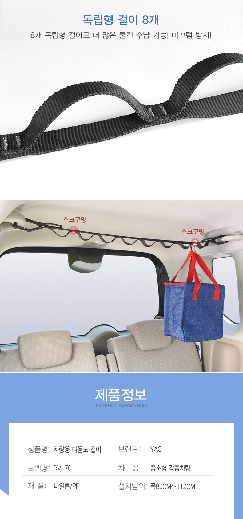 YAC-차량용 다용도 걸이/옷걸이 RV-70 이미지/