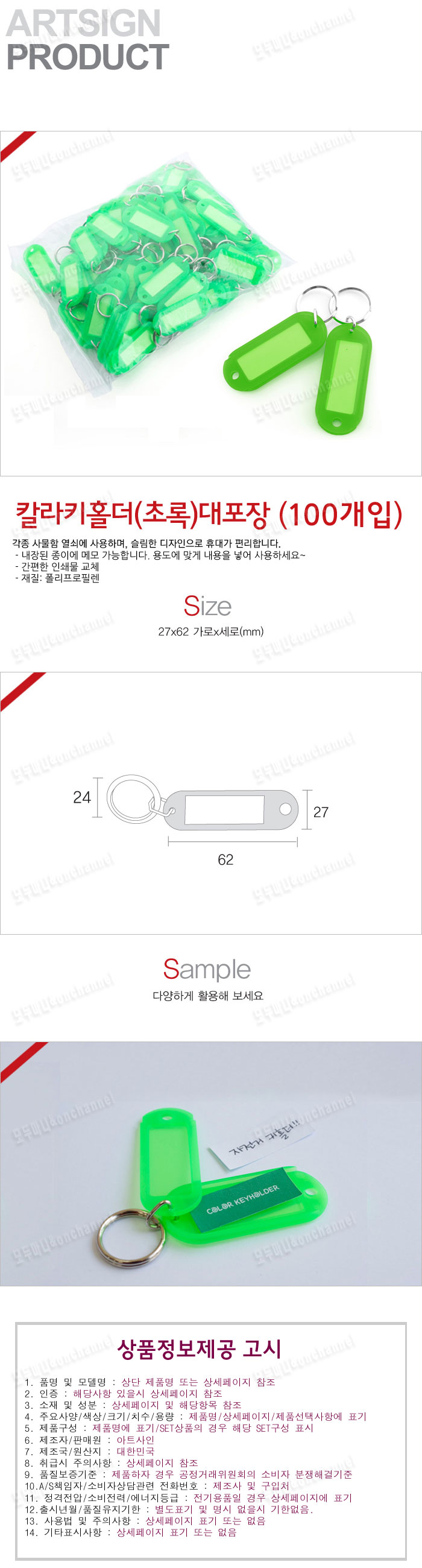 • 품명 및 모델명칼라키홀더(초록색100개입)