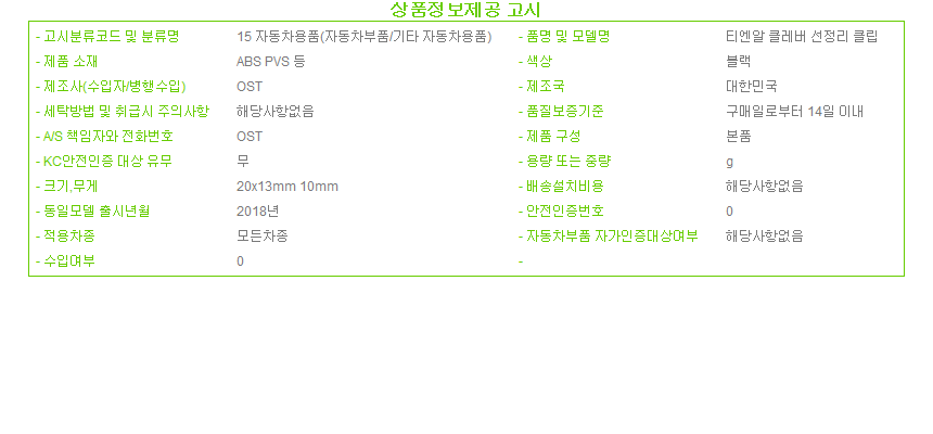 티엔알 클레버 선정리 클립 케이블정리 차량수납