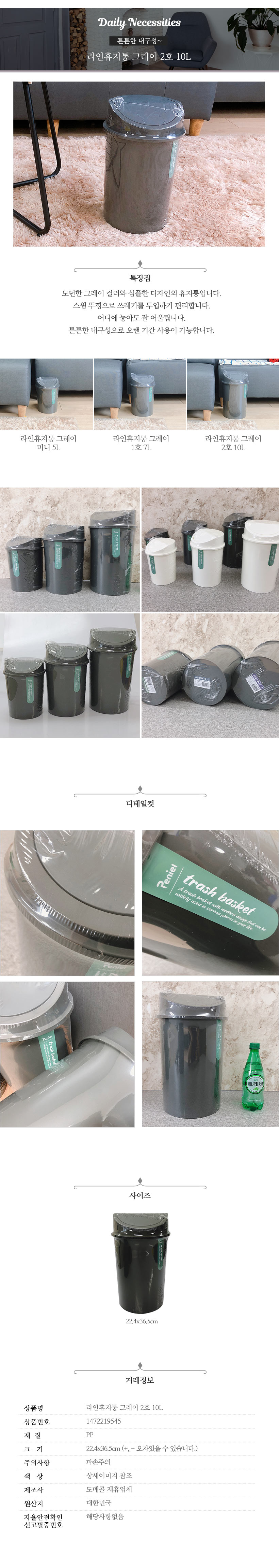 • 품명 및 모델명라인휴지통 그레이 2호 10L