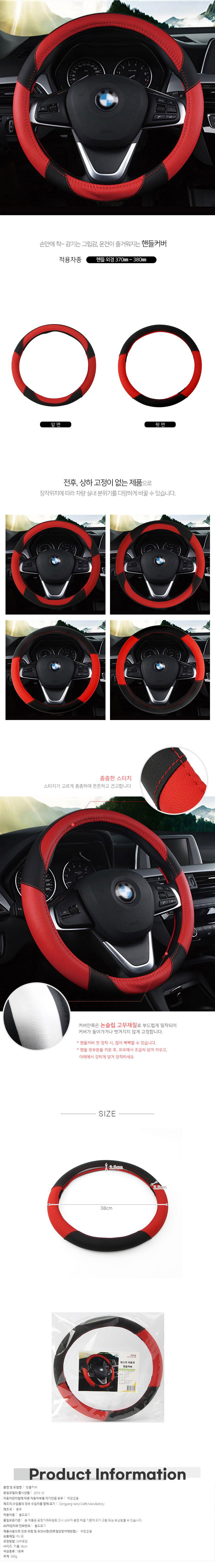 촘촘 스티치 투톤 자동차 핸들커버 레드x2개 감각있는 이미지/