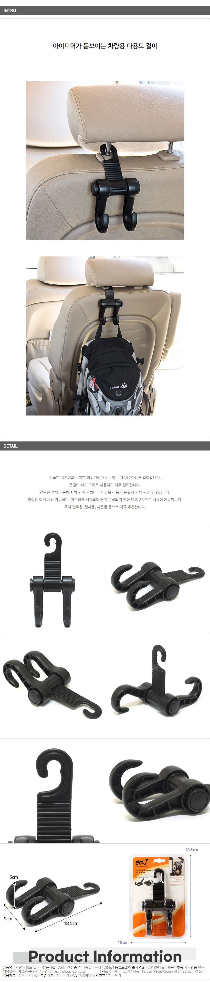 뒷좌석용 차량 헤드레스트 걸이 의자후크 자동차후크 이미지/