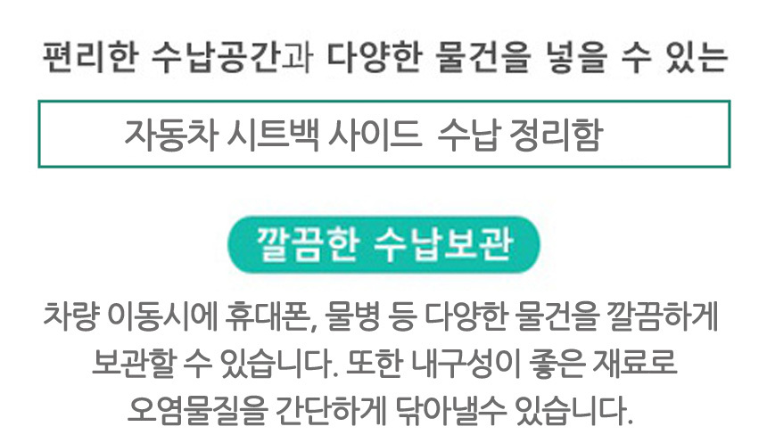 1. 품명 및 모델명 : 자동차 시트백 사이드 수납 정리함