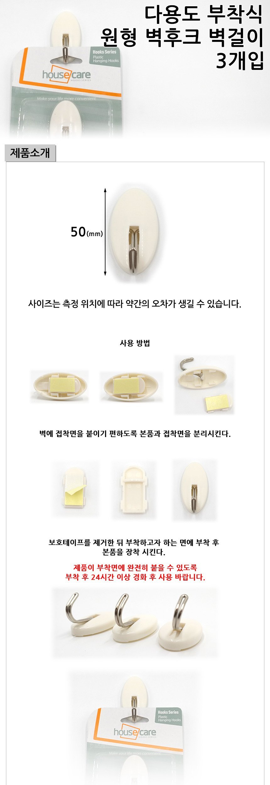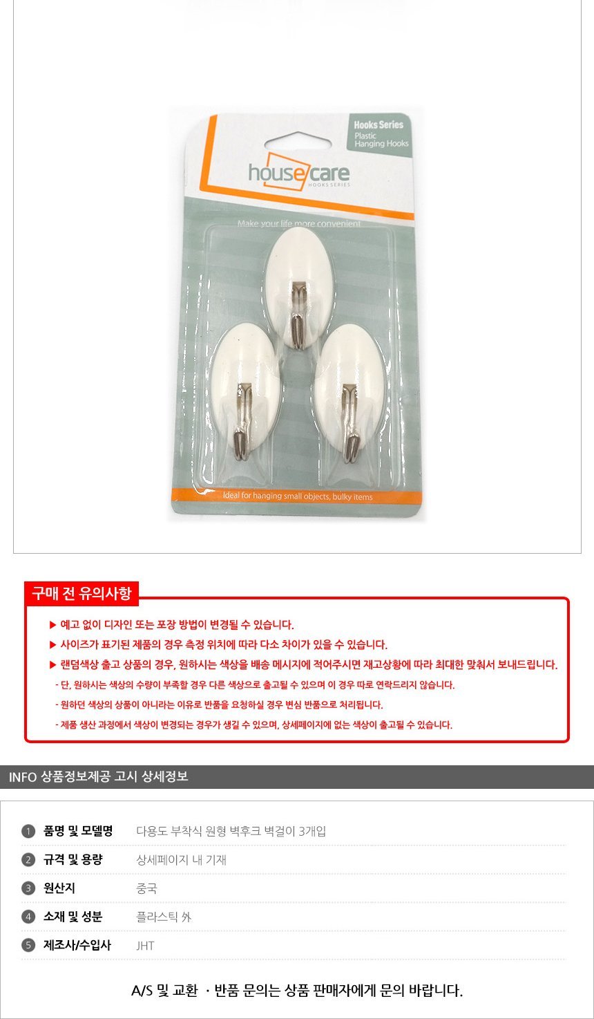 다용도 부착식 원형 벽후크 벽걸이 3개입 이미지/