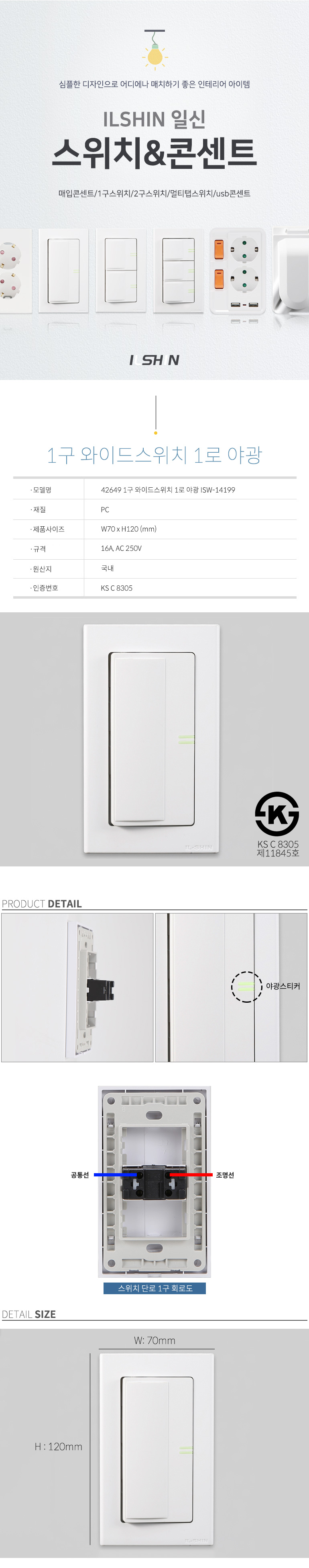 <상품명 : 일신 1구 와이드스위치 1로 야광 ISW 14>