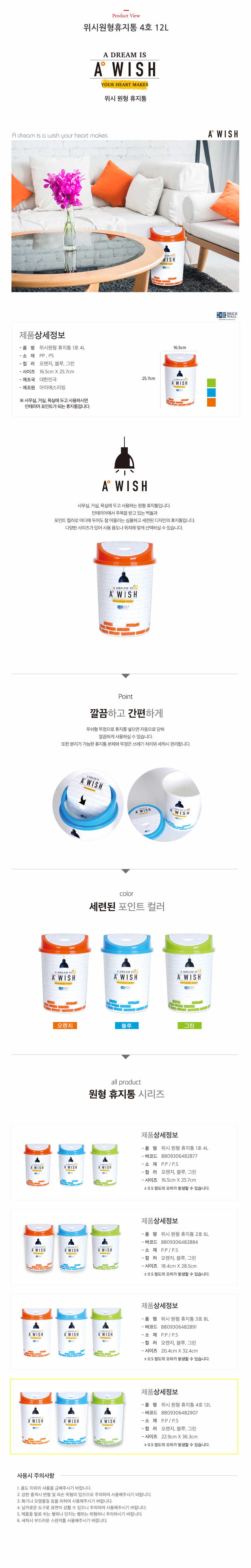 위시원형휴지통 4호 12L 2907 이미지/