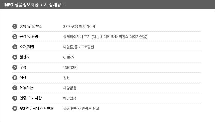 차량용 바로부착 햇빛가리개 2P F1203