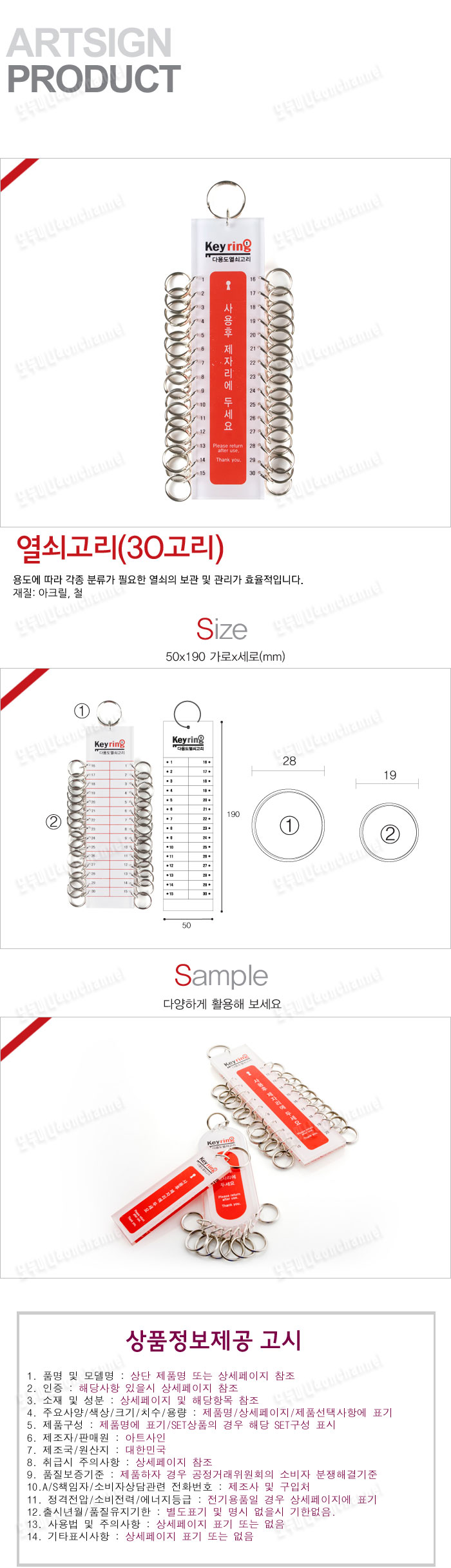 열쇠고리30고리 /키분류/키모음/키고리/키체인/사무용품/생활용품