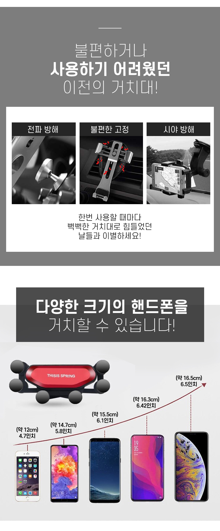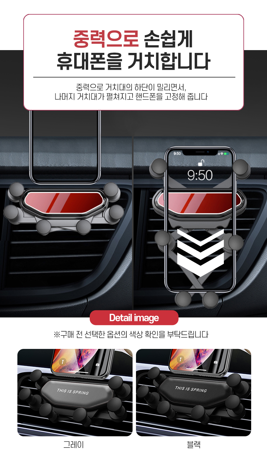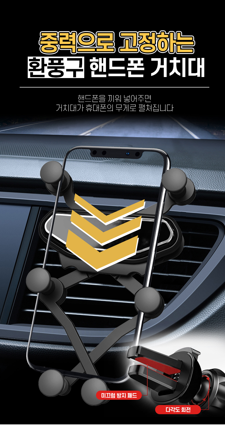 슥삭하는 6개의 꼭지점 중력 차량 거치대 스마트폰거치대 송풍구걸이거치대 핸드폰거치대 이미지/