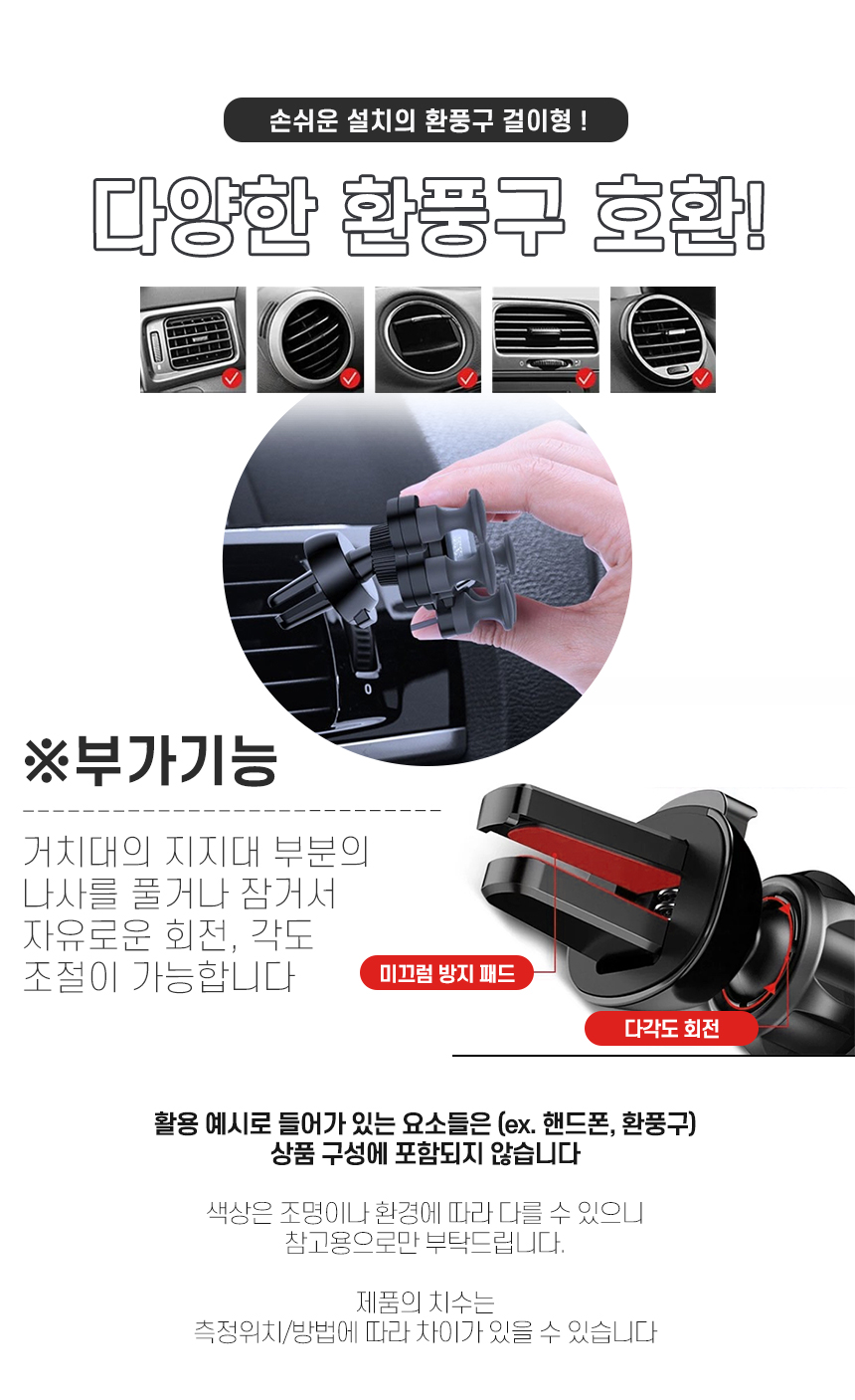 슥삭하는 6개의 꼭지점 중력 차량 거치대 스마트폰거치대 송풍구걸이거치대 핸드폰거치대
