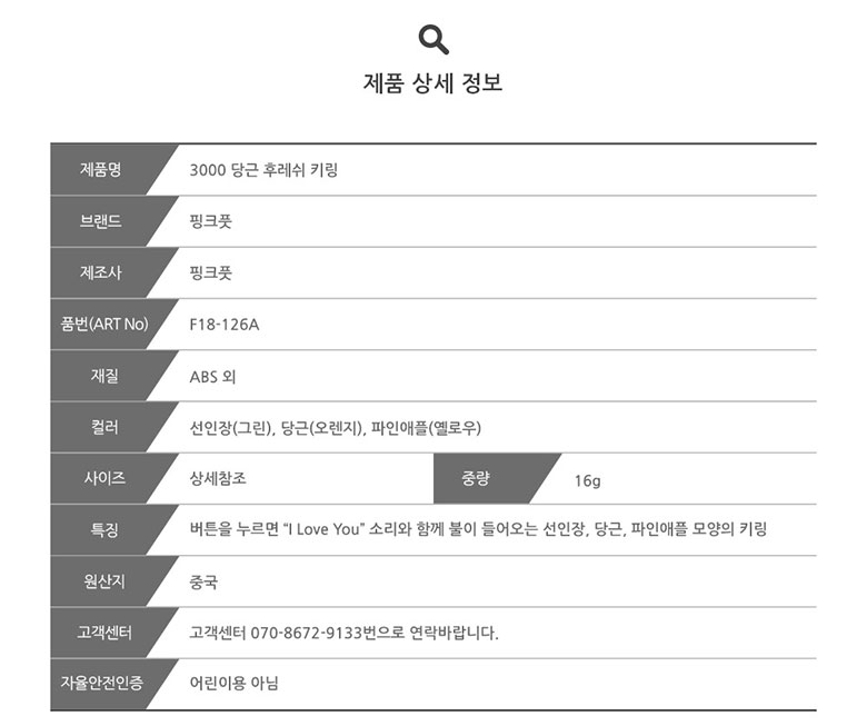 제조자 상품상세설명에 표기
