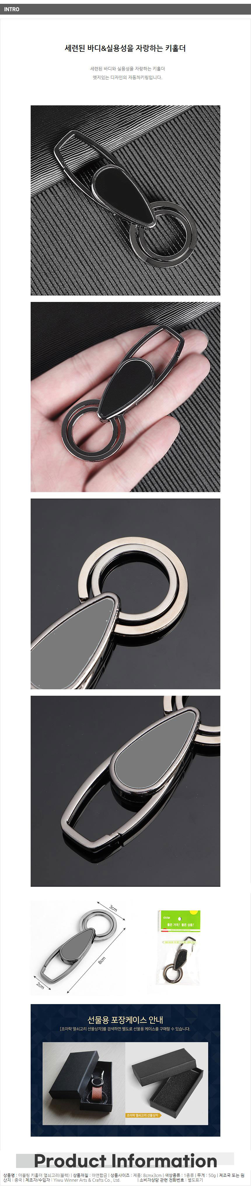 <상품명 : 베이직 더블링 키홀더 자동차키링 블랙 패션키링>