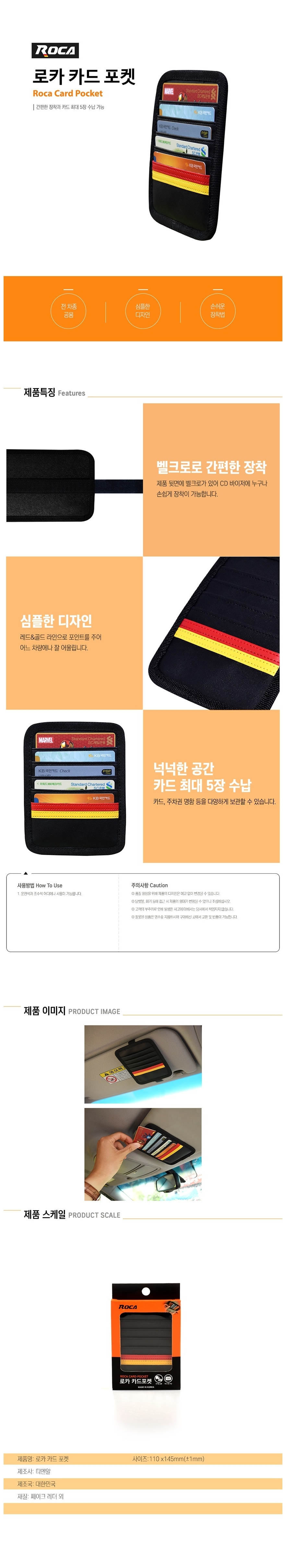 간편 장착 차량용 카드 포켓 자동차 수납함